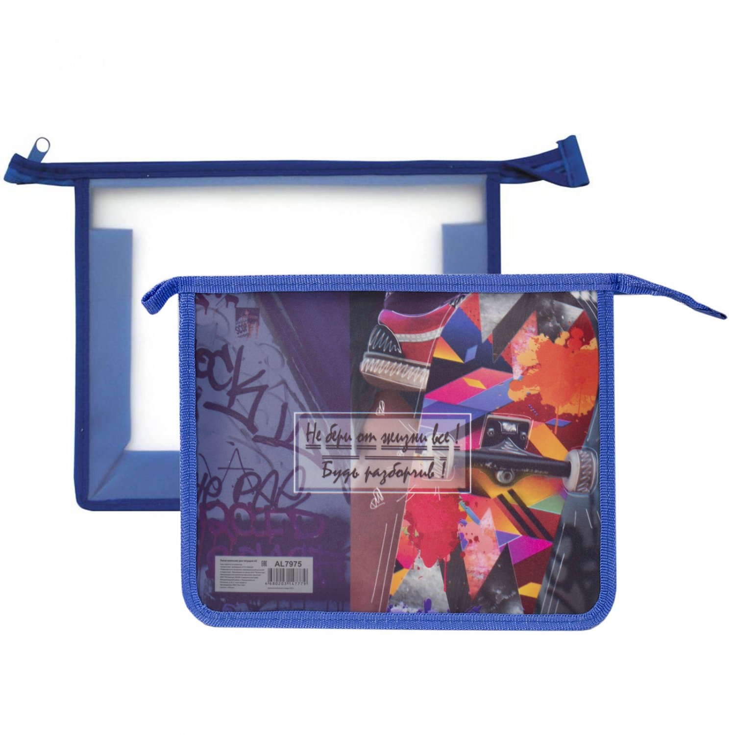 Папка школьная на молнии ТМ Пчёлка, формат А4, прозрачная, с цветной тканевой окантовкой, фиолетовая