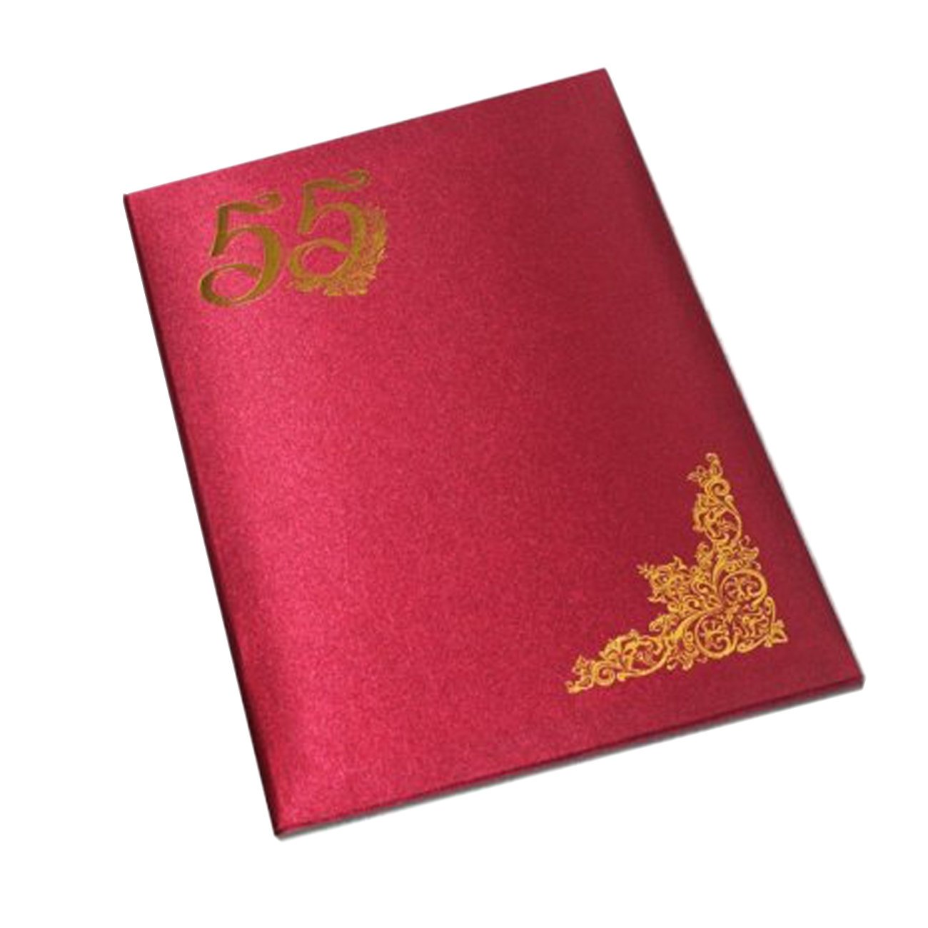 Адресная папка жесткая формата А4 изготовлена из бумвинила красного цвета. Внутренние вклейки — белая офсетная бумага. На обложку методом тиснения золотой фольгой нанесена надпись. Адресная папка подходит для поздравлений, хранения документов, а также подачи их на подпись.