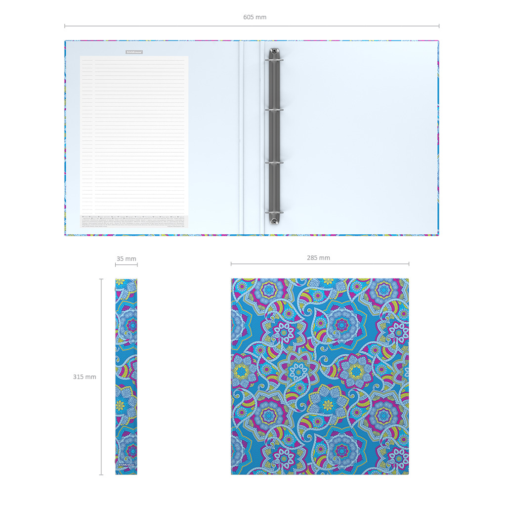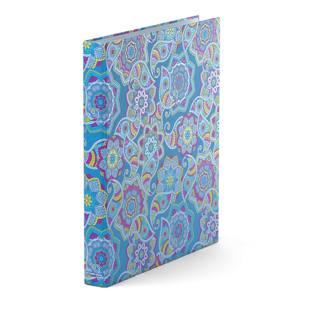 Папка - регистратор формата А4 снабжена механизмом на O-кольцах диаметром 25 мм. Изготовлена из картона толщиной 1,75 мм, покрытого матовой ламинированной бумагой с глянцевым УФ лаком. Корешок шириной 35 мм. Вместительность до 250 листов бумаги плотности 80 г/м?. Удобна для проведения презентаций, представления документации на семинарах. Завораживающий восточный орнамент.