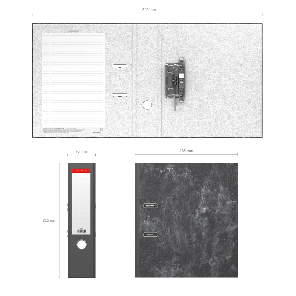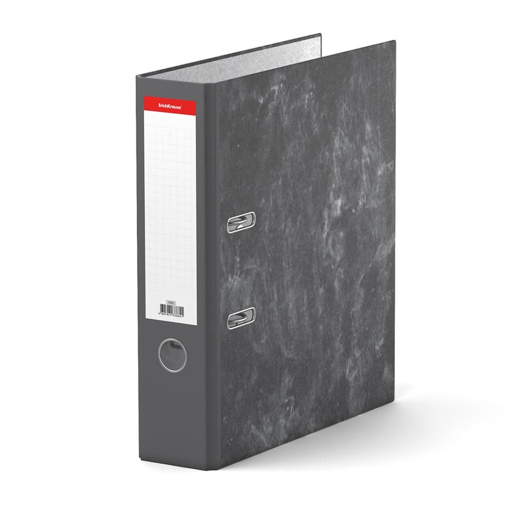 Папка - регистратор формата А4 снабжена стальным арочным механизмом с никелевым покрытием. Изготовлена из картона толщиной 1,75 мм, покрытого бумагой «под мрамор». На корешке шириной 70 мм изображена этикетка для маркировки. Для удобства использования на корешке имеется металлическое кольцо для захвата. Металлические фиксаторы удерживают папку в закрытом виде даже при максимальном наполнении. Вместительность 450 листов бумаги плотности 80 г/м?. На форзаце есть шаблон для оглавления. Папка предназначена для сдачи отчетной документации, последующего архивирования документов и хранения их в папке.