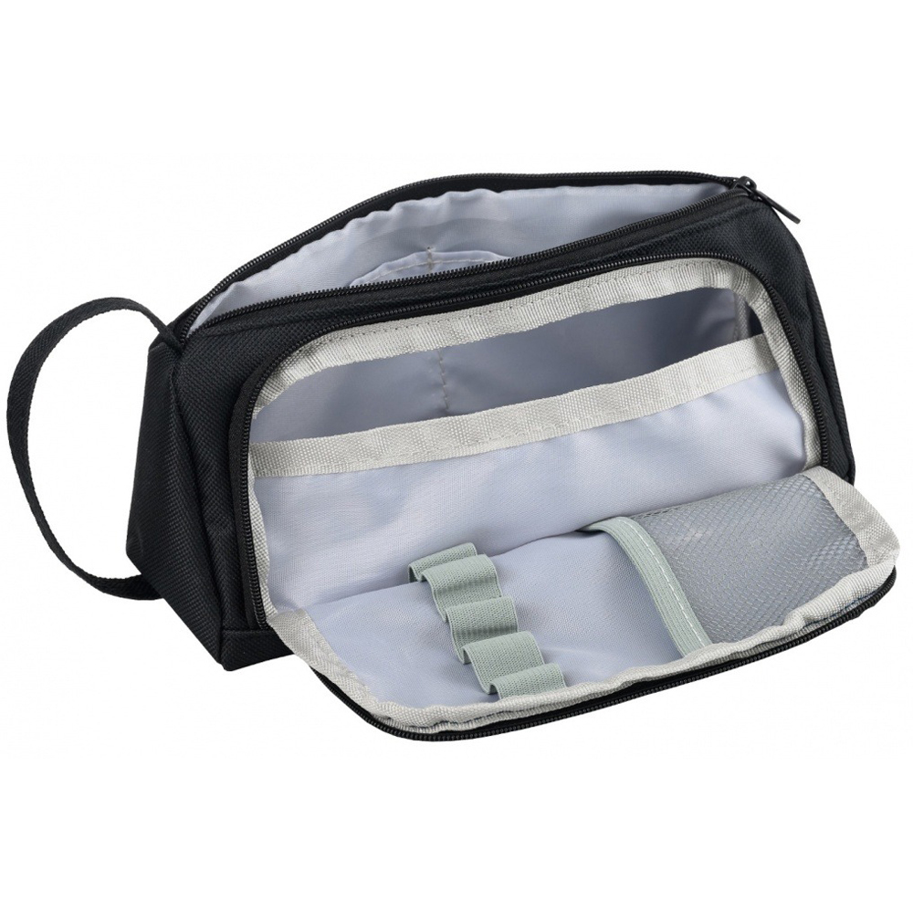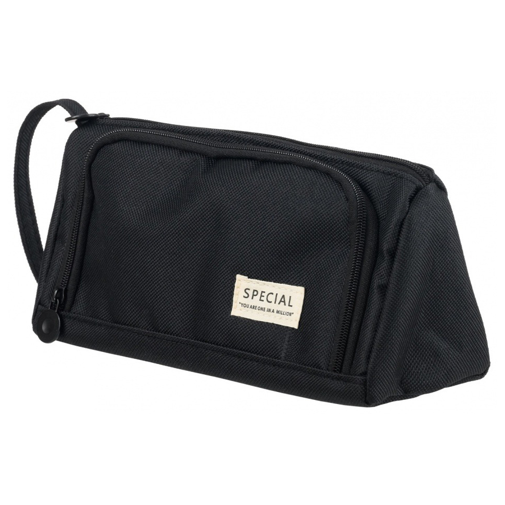 Пенал-косметичка-универсальный : материал плотная ткань /чёрный/, на молнии, два отделения, дополнительное отделение для канцелярских и косметических принадлежностей; размер 20*10*9 см. В коробке: 240 штук.