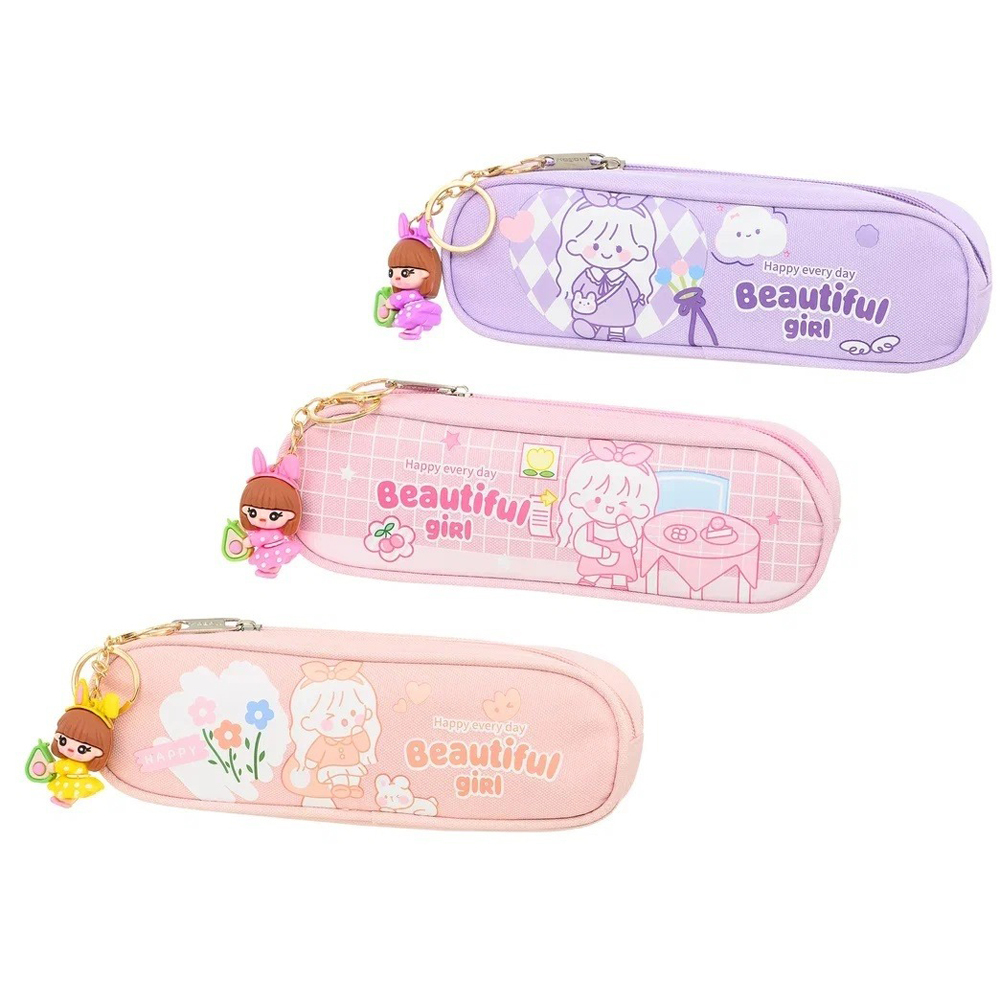 Пенал+брелок: "Beautiful Girl"; материал-плотная ткань, два кармана на молнии, цветной с рисунком /ассорти/, брелок-девочка, размер 23*7,5*6 см, в пластиковой упаковке с европодвесом. Кол-во штук в упаковке: 216