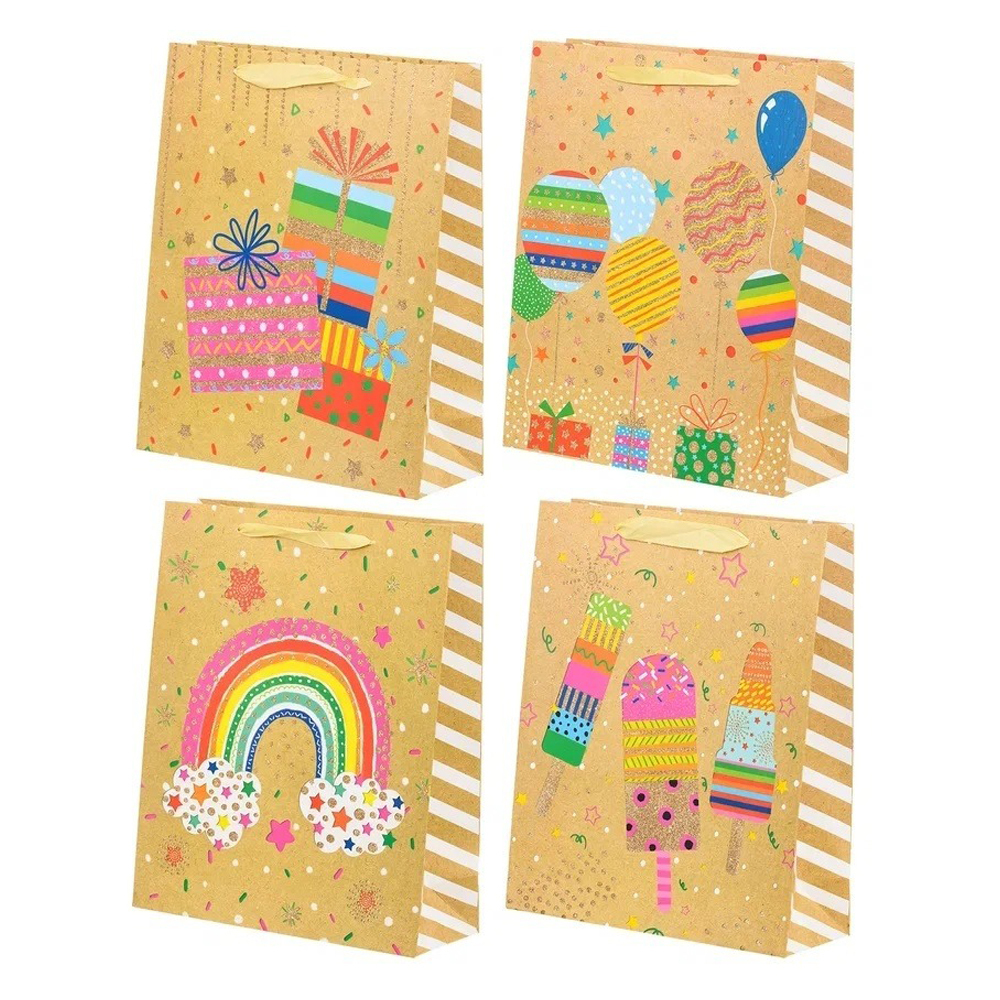 Подарочный пакет: "ПОЗДРАВЛЯЮ"; плотный, бежевый с рисунком, с блёстками /ассорти/; размер 26*10*32 см. В коробке 240 шт.