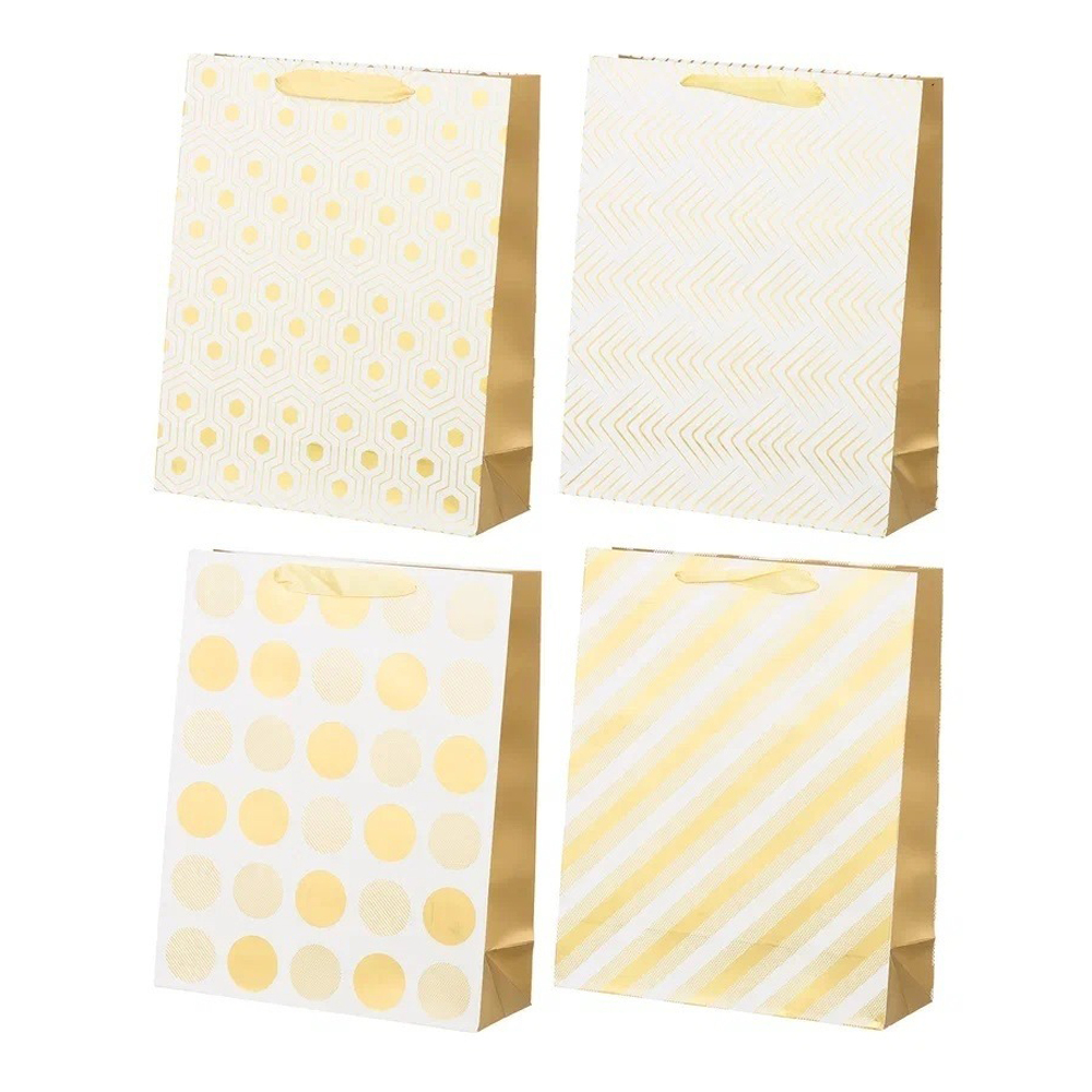 Подарочный пакет: плотный, белый с золотым рисунком /ассорти/; размер 30*12*40 см. В коробке 160 шт.