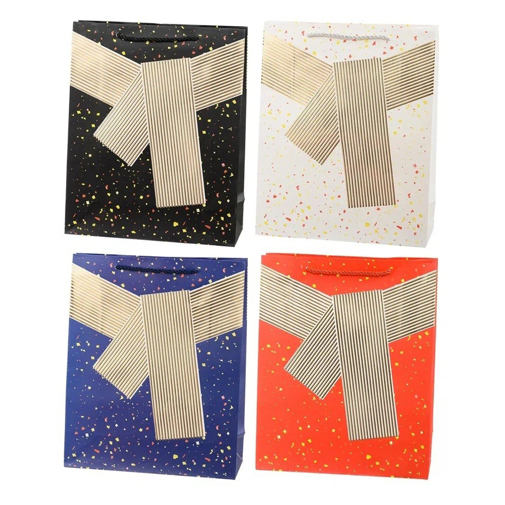 Подарочный пакет: "БАНТ"; плотный, цветной, ламинированный золотой бант/ассорти/; размер 26*10*32 см. В коробке 240 шт.