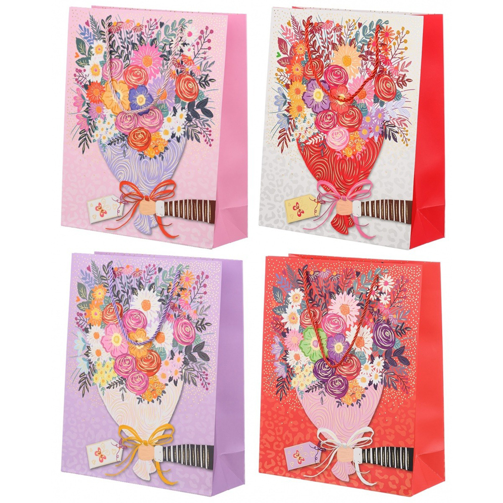 Подарочный пакет: "Букет" ;плотный, цветной с рисунком,/ассорти/; размер 26*10*32 см. В коробке: 240 шт.