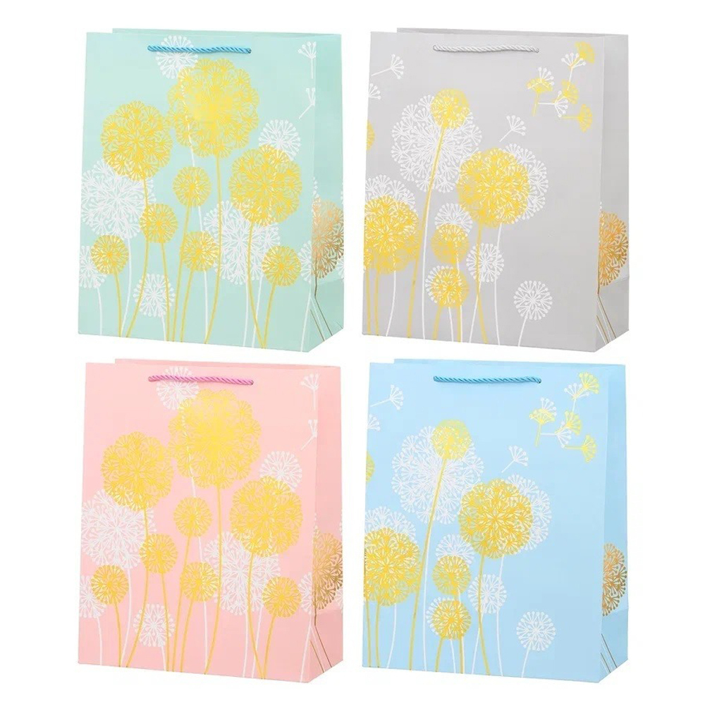 Подарочный пакет: "ОДУВАНЧИКИ"; плотный, цветной с рисунком-золотое тиснение; размер 18*23*10 см. В коробке 320 шт.