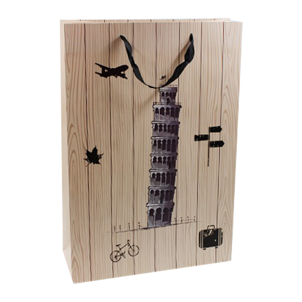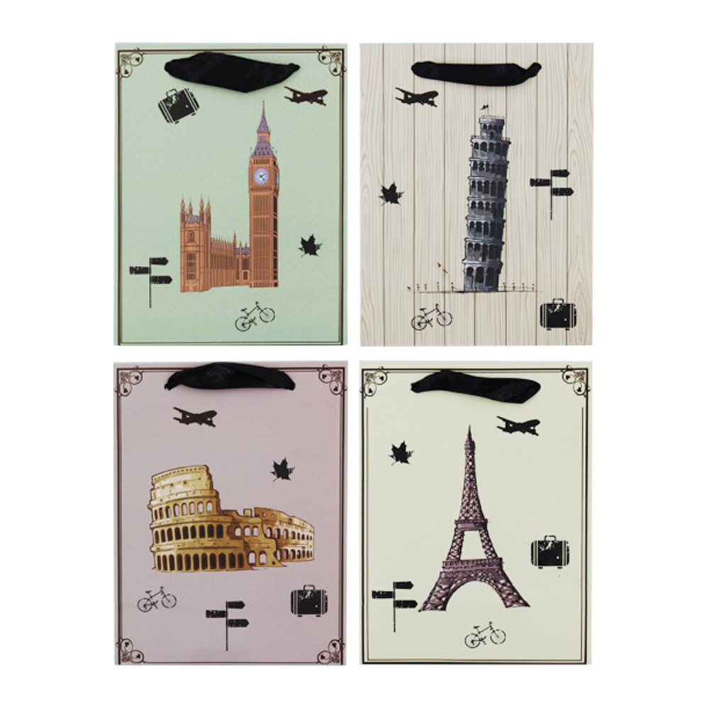 Подарочный пакет: "Достопримечательности Мира"; плотный (210 г/кв.м/, цветной с рисунком /ассорти/; размер 32*45*12 см. В коробке 160 шт.