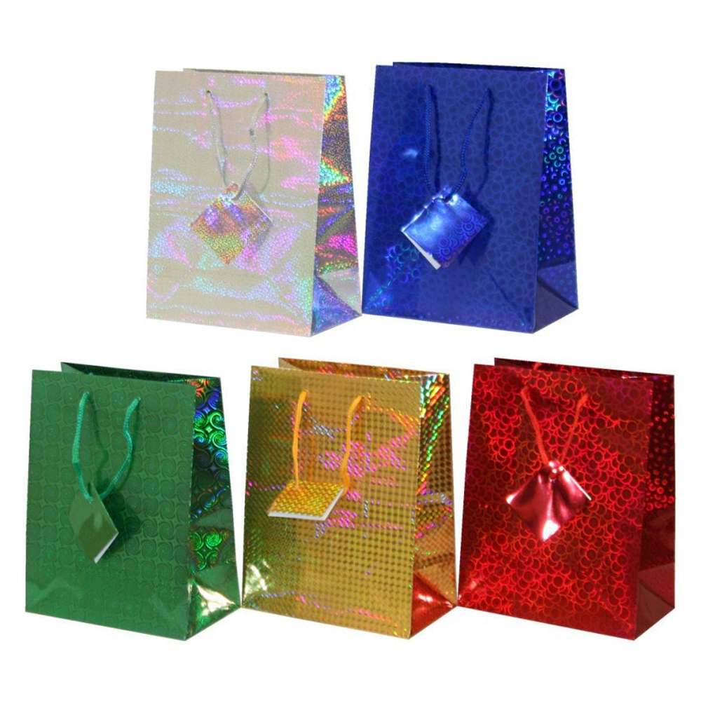 Подарочный пакет: бумажный, голография /крупный рисунок/, цвета в ассортименте, 26*32*10 см. В коробке 280 шт.