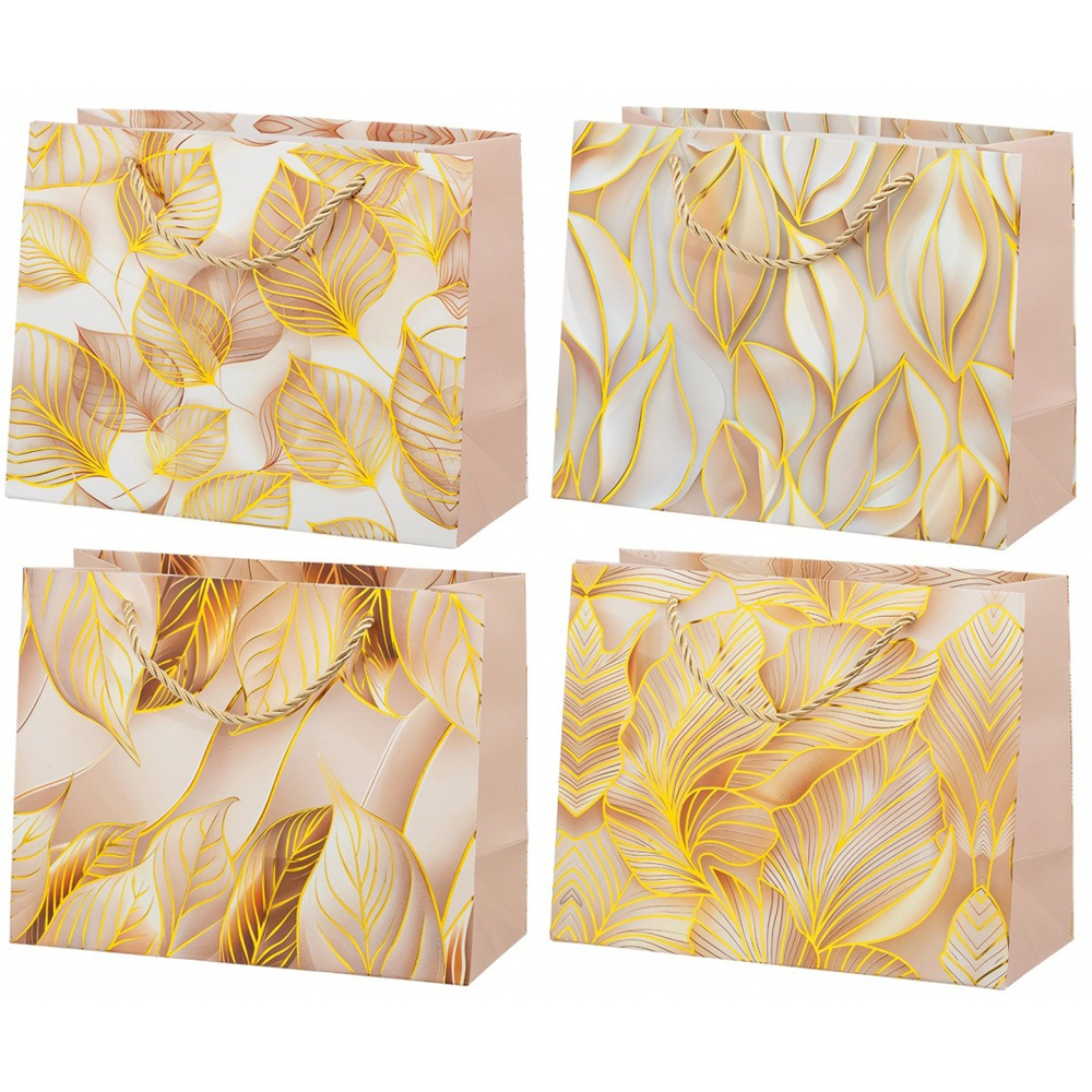 Подарочный пакет: "Листья"; плотный, цветной с рисунком, фольгированный,/ассорти/; размер 32*12*26 см. В коробке: 240 шт.