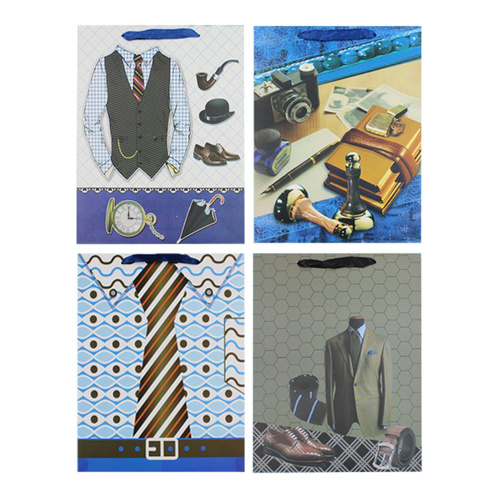 Подарочный пакет: "Мужская тематика"; плотный (210 г/кв.м/, цветной с рисунком /ассорти/; размер 11,5*14,5*6 см. В коробке 480 шт.