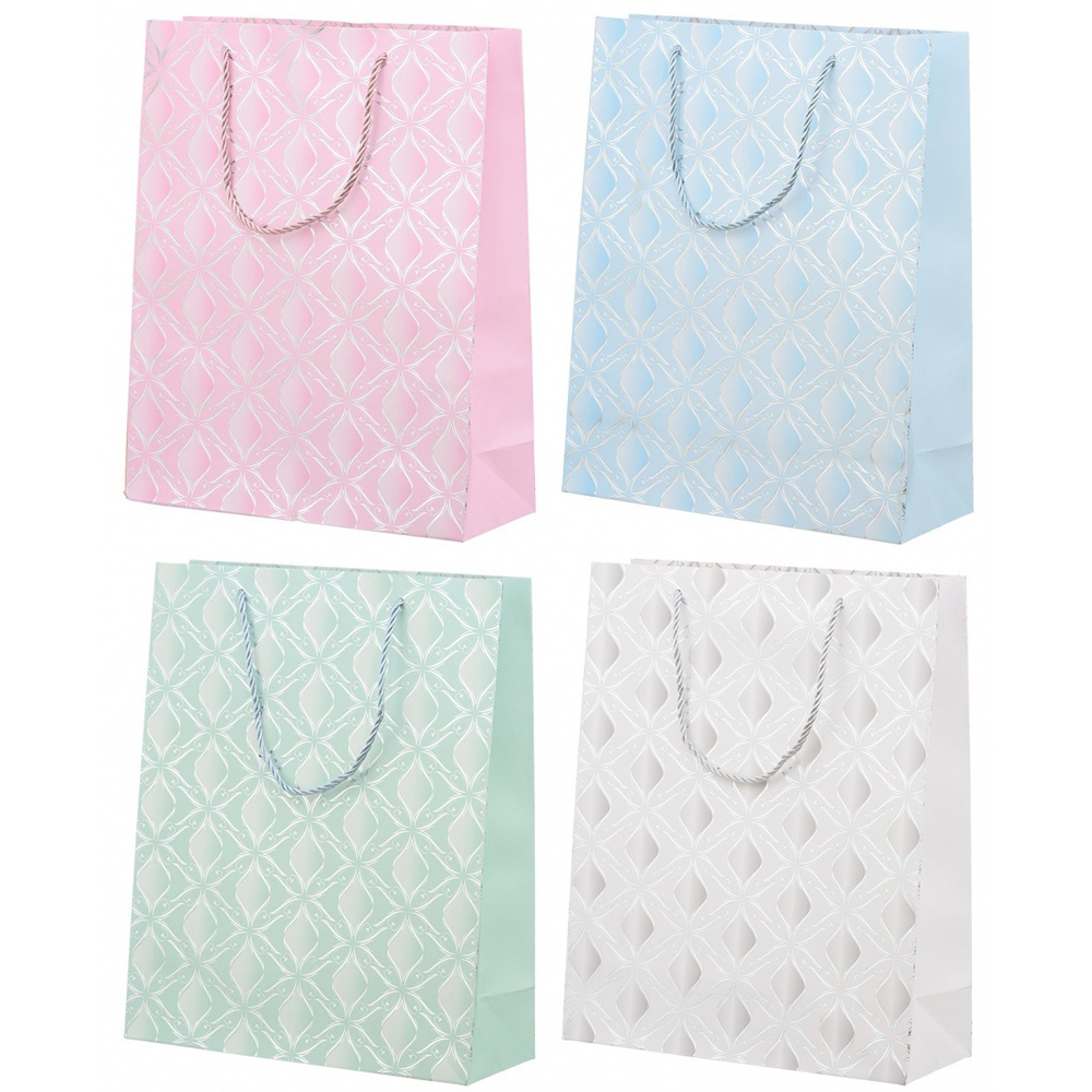 Подарочный пакет: "Нежный блеск"; плотный, цветной с рисунком, фольгированный,/ассорти/; размер 30*12*40 см. В коробке: 160 шт.
