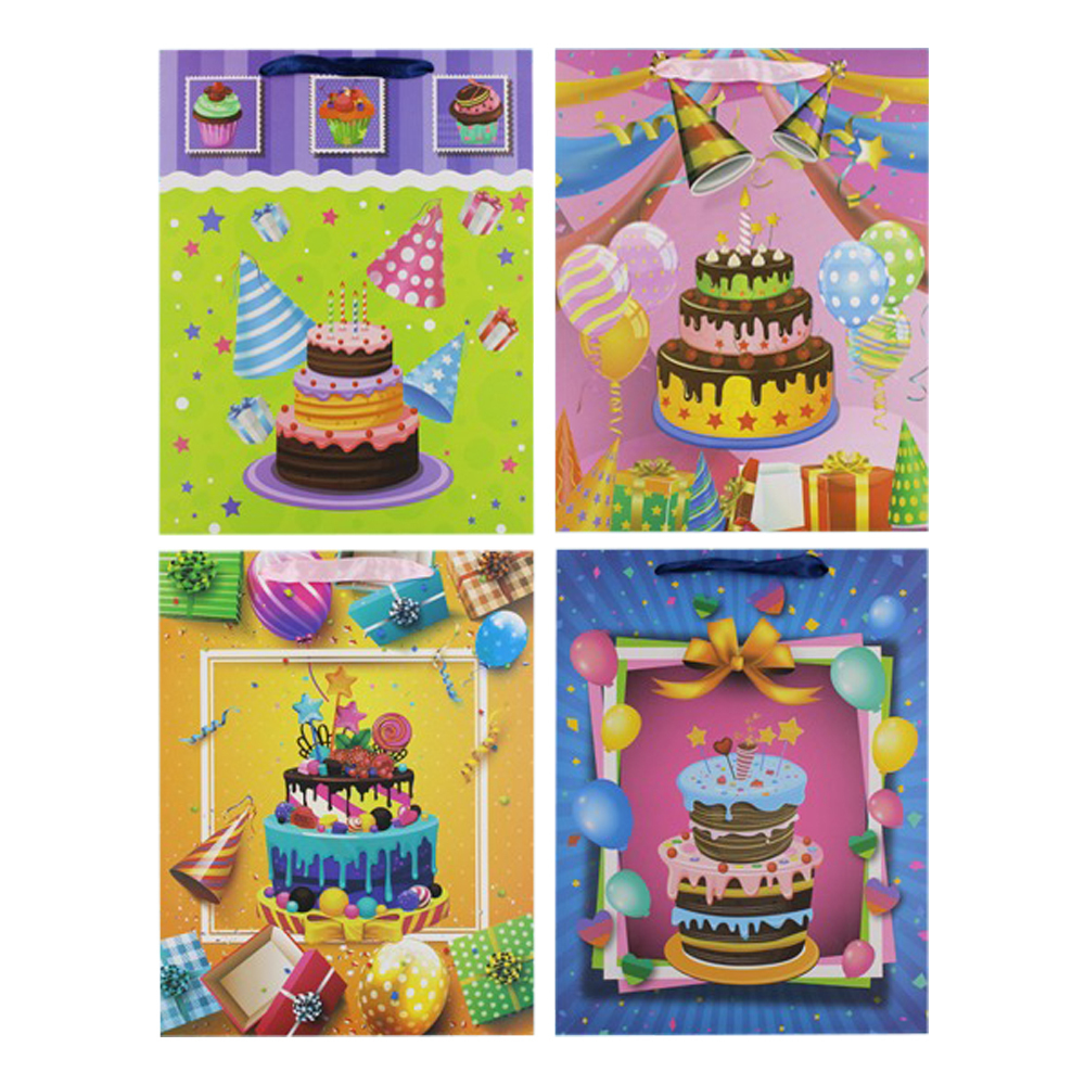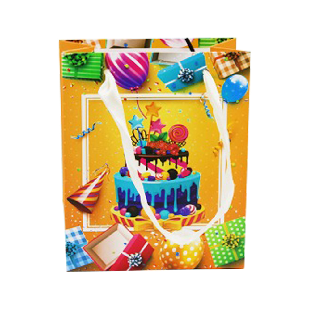 Подарочный пакет: "С ДНЁМ РОЖДЕНИЯ"; плотный (210 г/кв.м/, цветной с рисунком /ассорти/; размер 11,5*14,5*6 см. В коробке 480 шт.