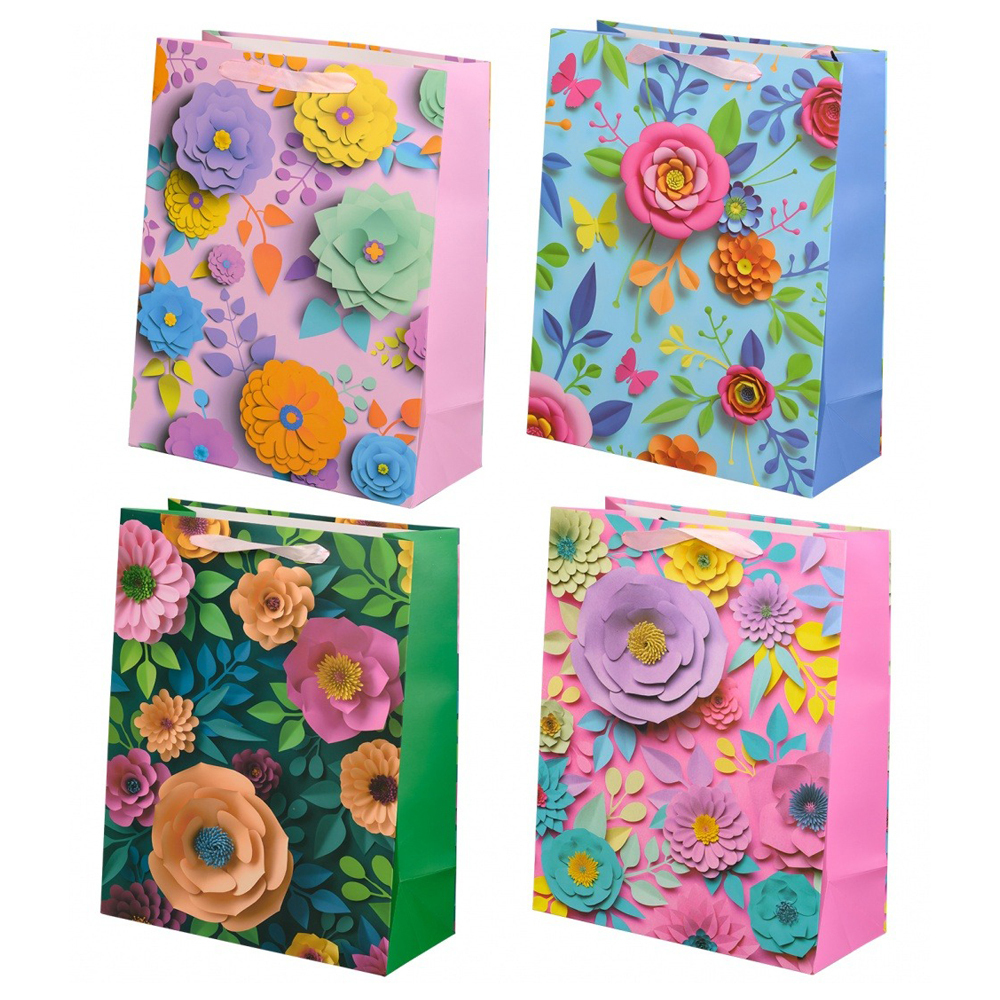 Подарочный пакет: "ЦВЕТЫ"; плотный, цветной с рисунком /ассорти/; размер 32*45*12 см В коробке 160 шт.