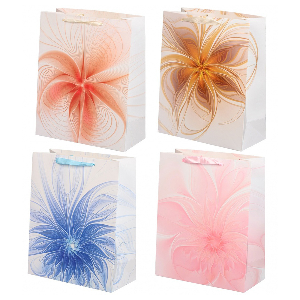 Подарочный пакет: "ЦВЕТЫ АБСТРАКЦИЯ"; плотный, цветной с рисунком /ассорти/; размер 32*45*12 см В коробке 160 шт.