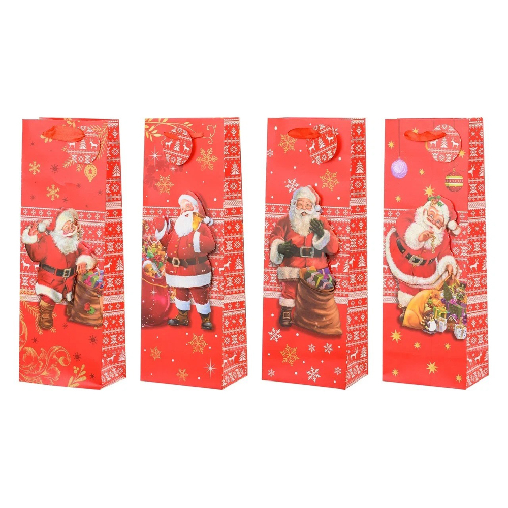 Подарочный пакет: "ДЕД МОРОЗ"; для бутылок; плотный, цветной с рисунком, с объёмной аппликацией /ассорти/; размер 12,7*8,3*36 см. см. Количество в коробке: 360 шт.