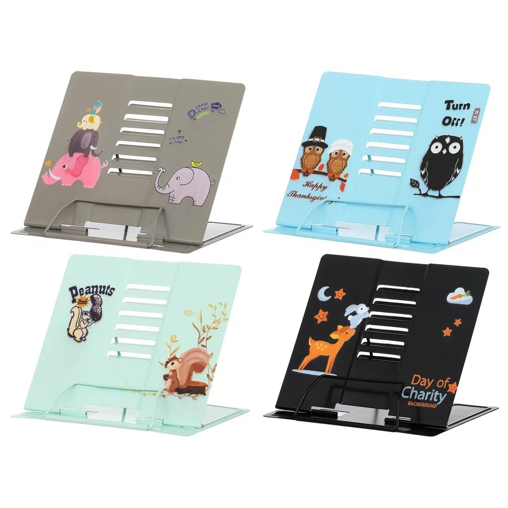 Подставка для книг: "ЛЕСНЫЕ ЖИВОТНЫЕ"; металлическая, цветная с рисунком, размер 22,5*21 см. В коробке: 48 шт.