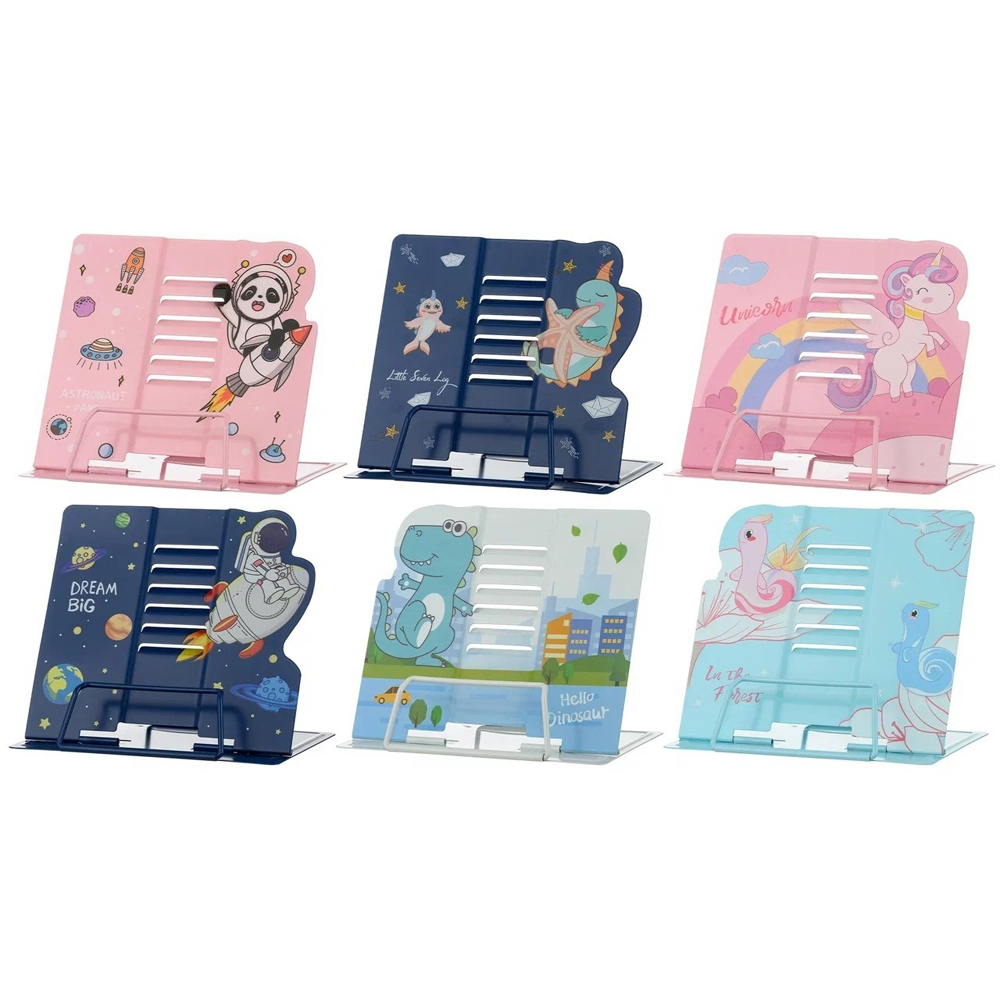 Подставка для книг: "АССОРТИ"; металлическая, цветная с рисунком-космос, подводный мир, единорог, размер 22,5*21 см. В коробке: 48 шт.