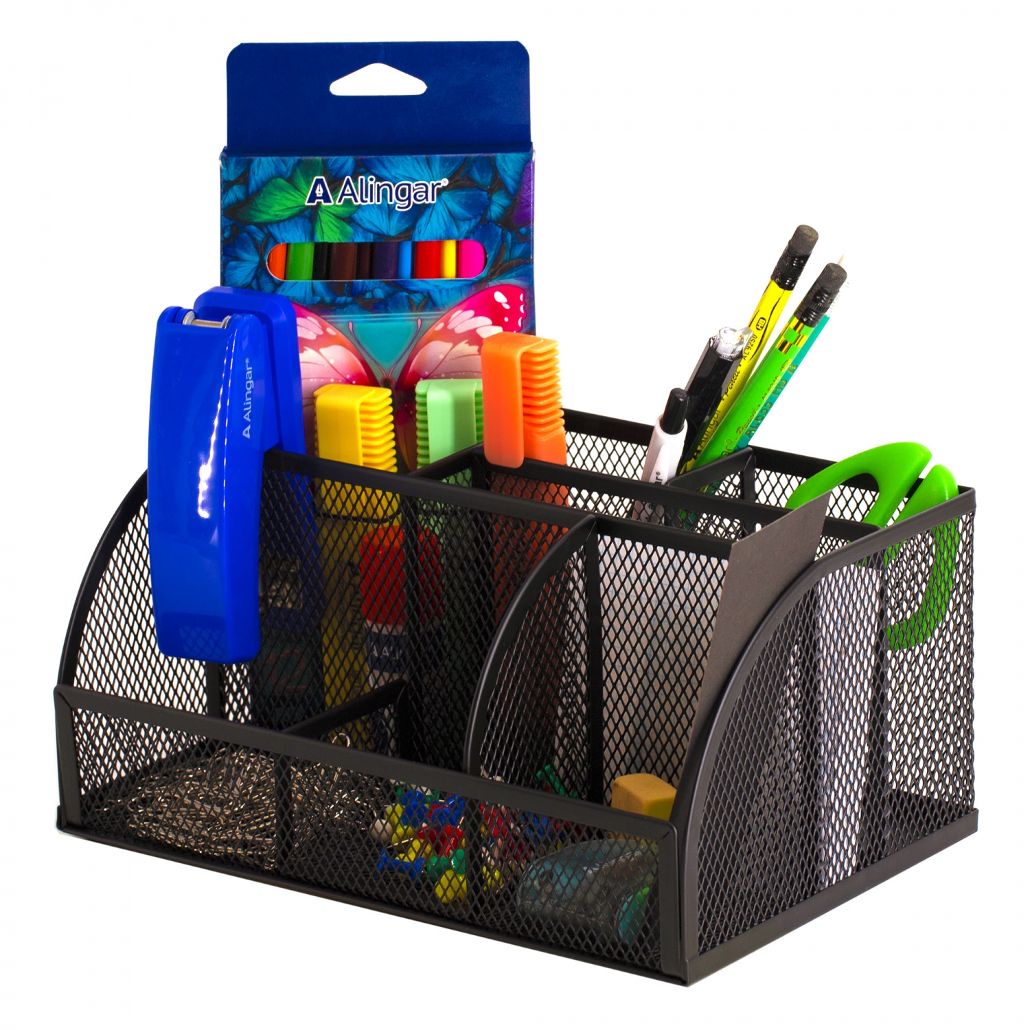 Подставка-органайзер д/канцтоваров, Alingar, металлическая, 23*20*15 см, 5 отделений, выдвижной ящик