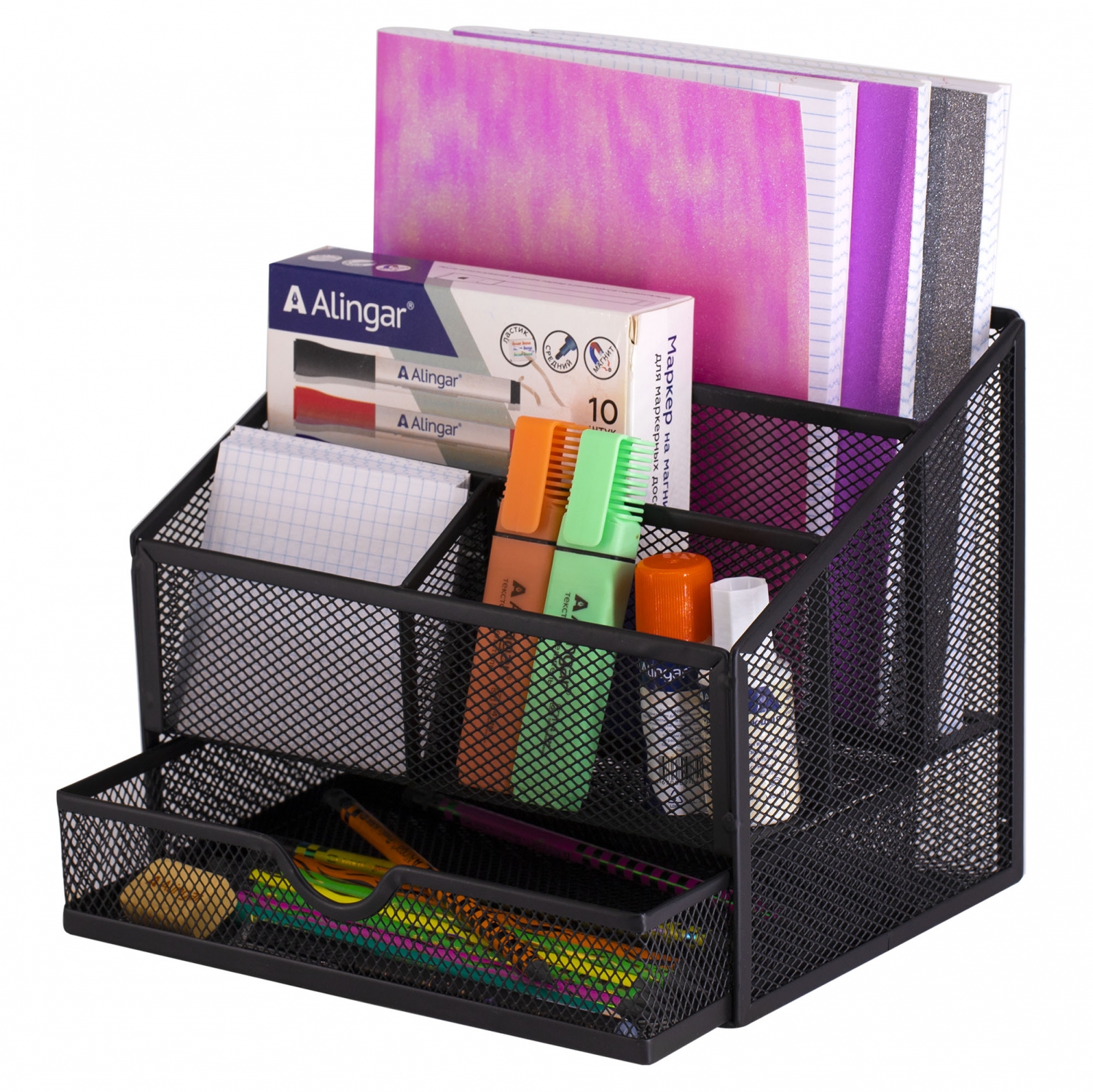 Подставка-органайзер д/канцтоваров, Alingar, металлическая, 22 см * 10 см*14 см, черная, 7 отделений