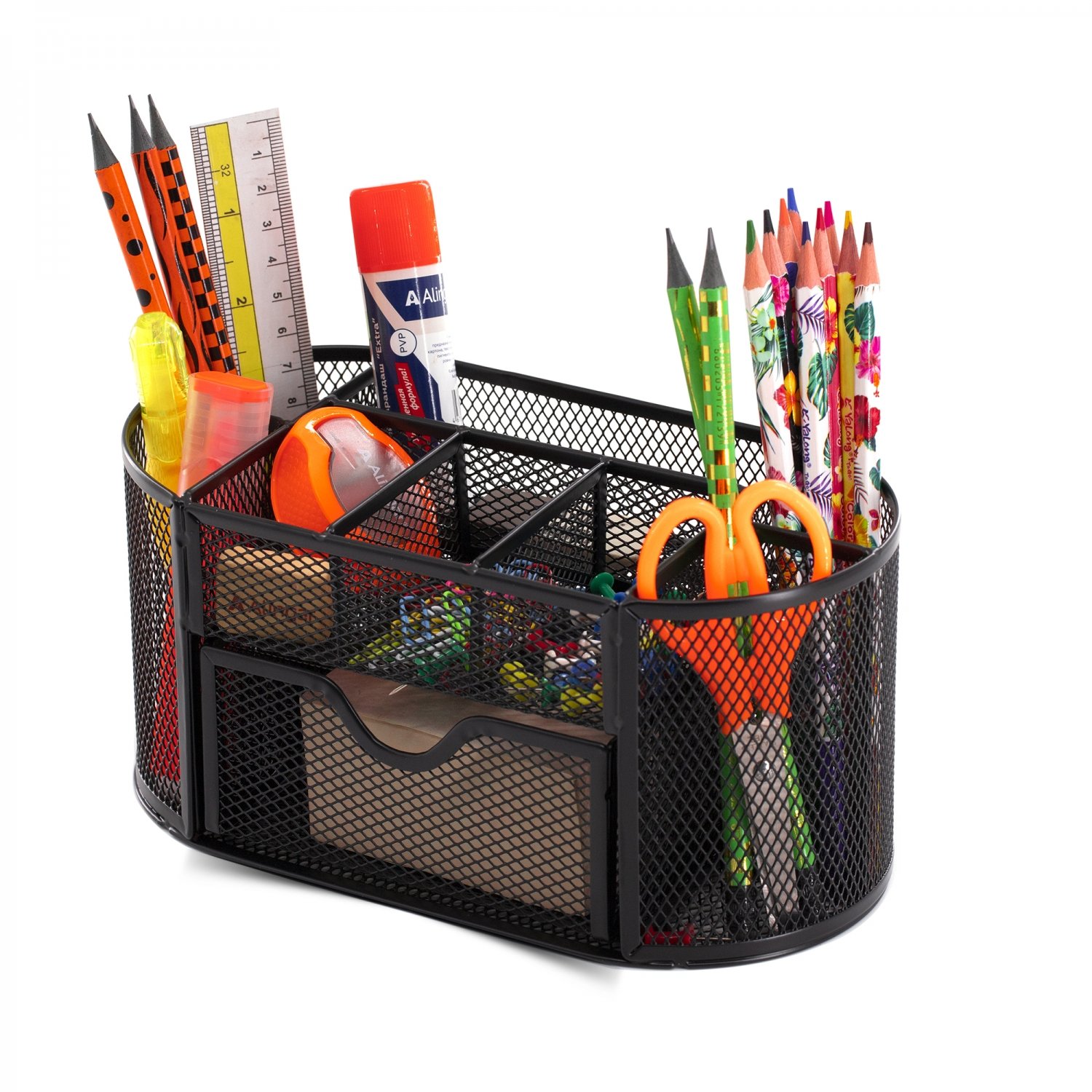 Подставка-органайзер д/канцтоваров, Alingar, металлическая, 23*20*15 см, 5 отделений, выдвижной ящик