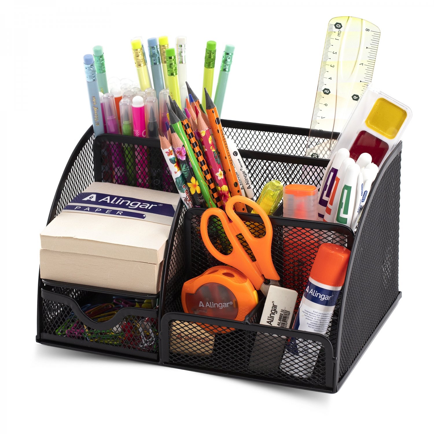 Подставка-органайзер д/канцтоваров, Alingar, металлическая, 22 см * 10 см*14 см, черная, 7 отделений