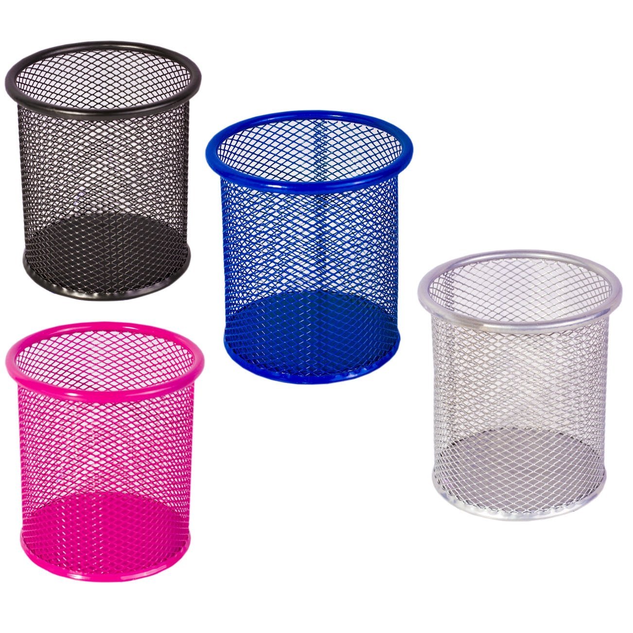 Подставка с круглым основанием для канцелярских принадлежностей не займет много места на рабочем столе и легко впишется в офисный интерьер. Изготовлена из прочного металла. Цвет - ассорти.
