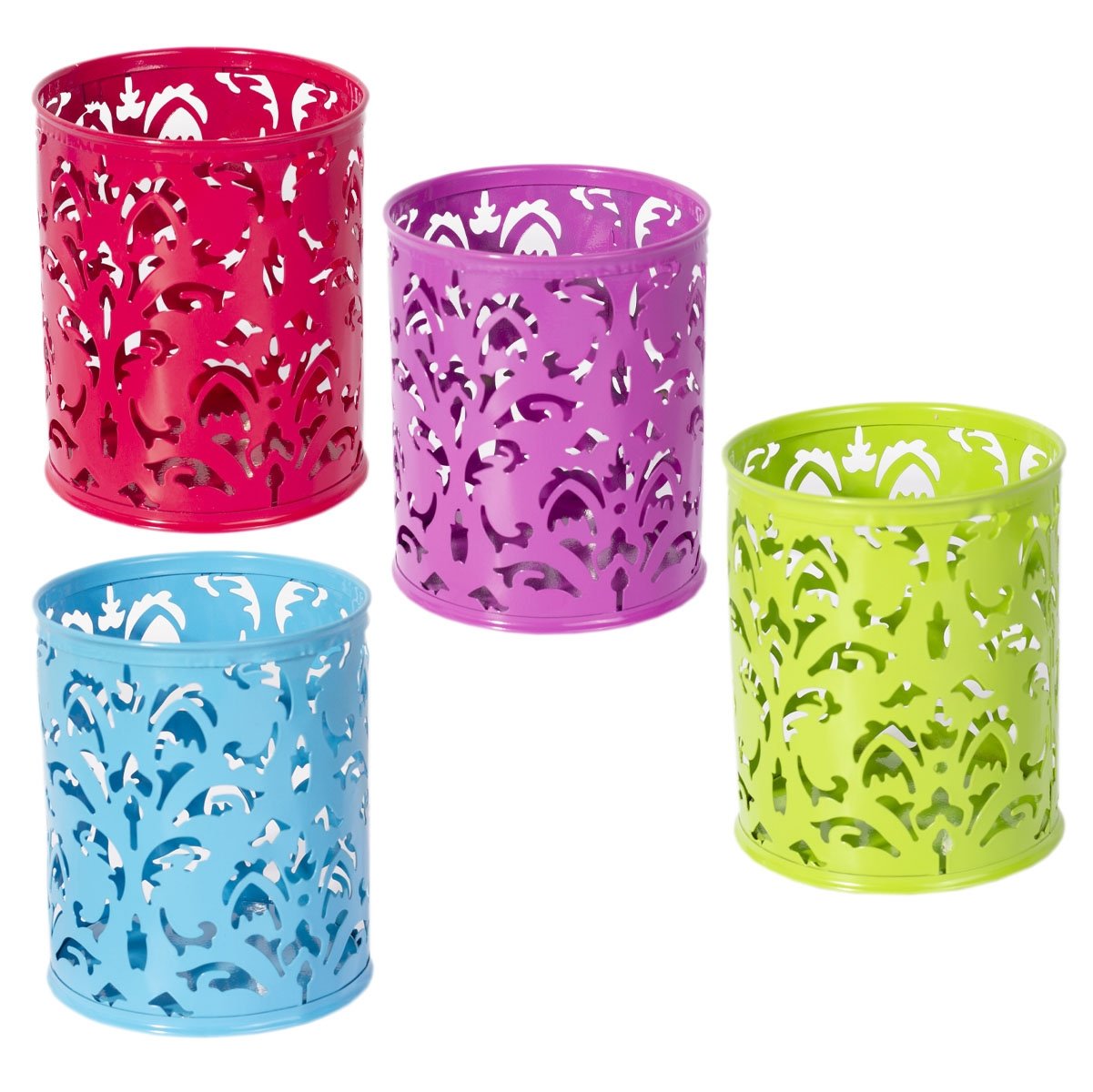 Подставка с круглым основанием для канцелярских принадлежностей не займет много места на рабочем столе и легко впишется в офисный интерьер. Изготовлена из прочного металла. Цвет - ассорти.