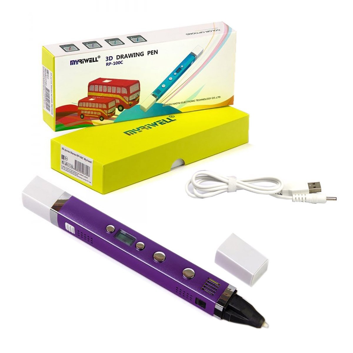Myriwell RP-100C новая модель 3D ручки от китайского производителя Myriwell в очень лёгком и тонком корпусе. Её толщина всего 1,8 см. Ручка настолько маленькая и удобная, что напоминает скорее большой фломастер, а рисовать ей не менее комфортно, чем если бы Вы действительно держали в руке маркер. Модель оснащена портом USB для подключения к компьютеру. Питание также осуществляется через USB, так что при наличии внешнего аккумулятора можно рисовать абсолютно в любом месте.