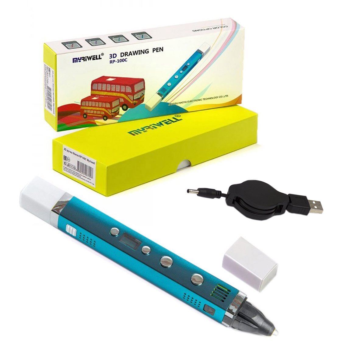 Myriwell RP-100C новая модель 3D ручки от китайского производителя Myriwell в очень лёгком и тонком корпусе. Её толщина всего 1,8 см. Ручка настолько маленькая и удобная, что напоминает скорее большой фломастер, а рисовать ей не менее комфортно, чем если бы Вы действительно держали в руке маркер. Модель оснащена портом USB для подключения к компьютеру. Питание также осуществляется через USB, так что при наличии внешнего аккумулятора можно рисовать абсолютно в любом месте.