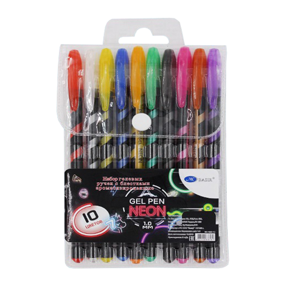 Ручка гелевая, Basir, цветные чернила, серия "Неон - пастель", ароматизированные, с блёстками. 10 шт
