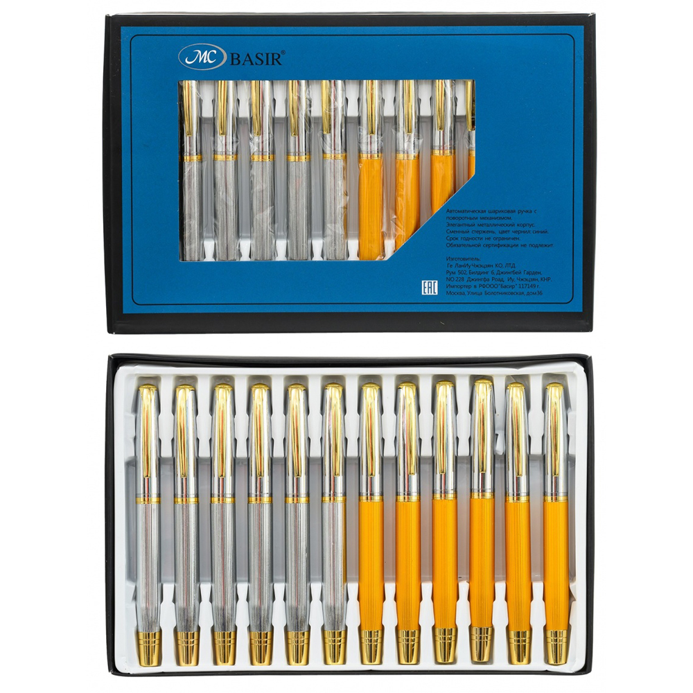 Ручка металлическая: цветной корпус (золото, серебро), колпачок серебристый, клип и наконечник золотые. В коробке: 360 штук.