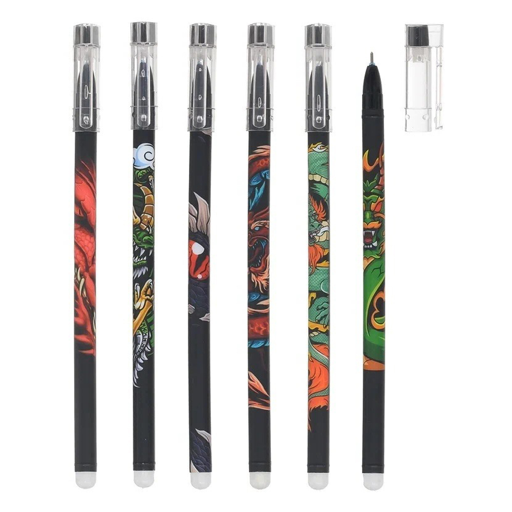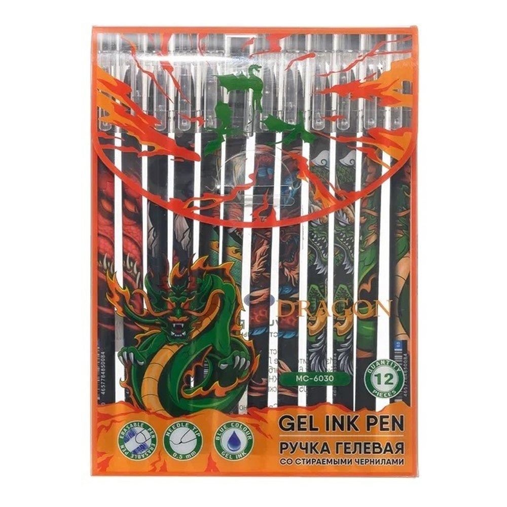 Ручка со стираемыми чернилами гелевая: "ДРАКОН"; чёрный корпус с рисунком /ассорти/; толщина пишущего наконечника-0,5 mm; цвет чернил-синий. Кол-во в упаковке: 12 шт.Кол-во в блоке: 144 шт.