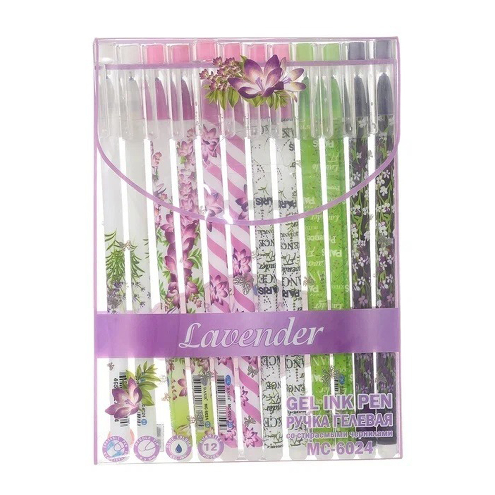 Ручка со стираемыми чернилами гелевая: "ЛАВАНДА "; цветной корпус с рисунком /ассорти/; толщина пишущего наконечника-0,5 mm; цвет чернил-синий. Кол-во в упаковке: 12 шт.Кол-во в блоке: 144 шт.