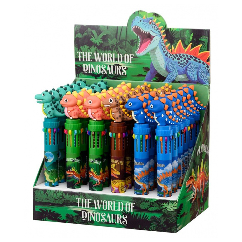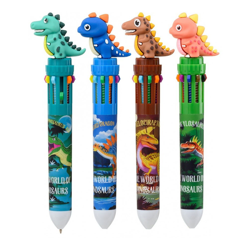 Авторучка 10-и цветная: детская; "ДИНОЗАВР"; цветной корпус с рисунком /ассорти/, прорезиненный наконечник-ластик; 0,5 mm.