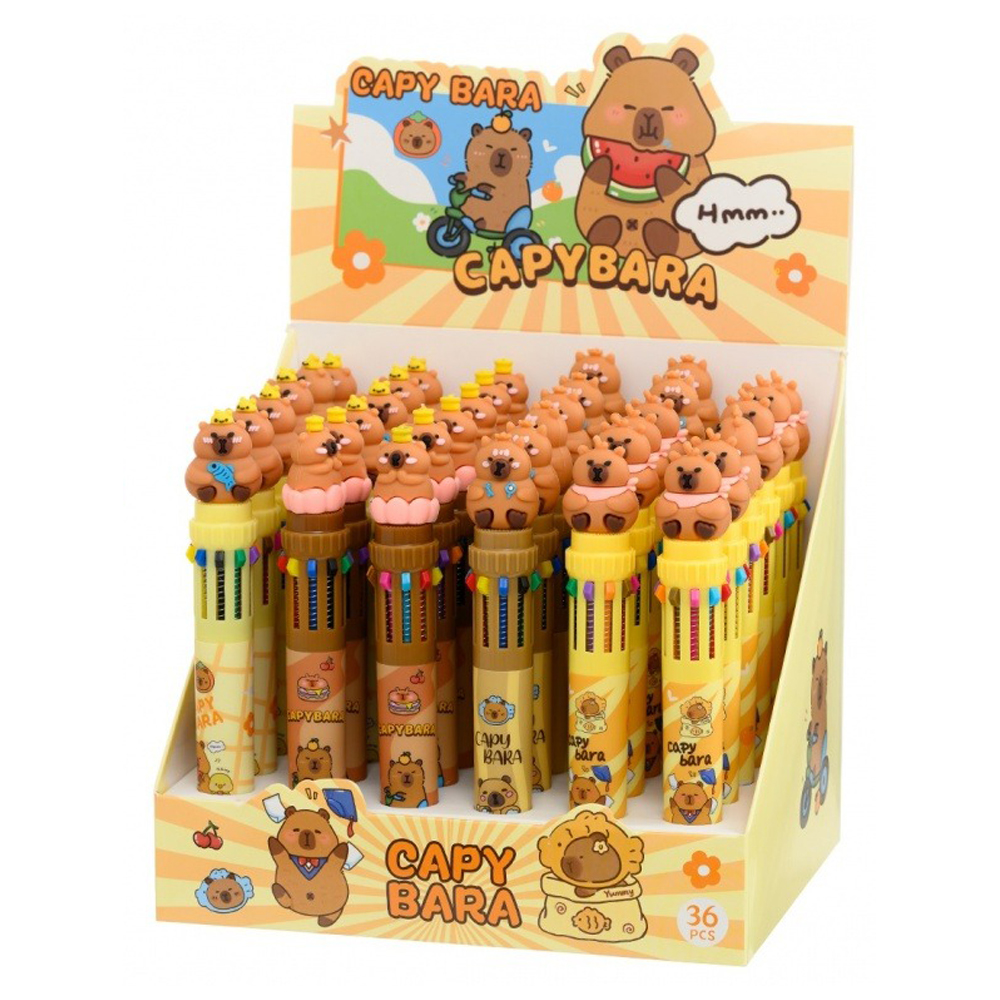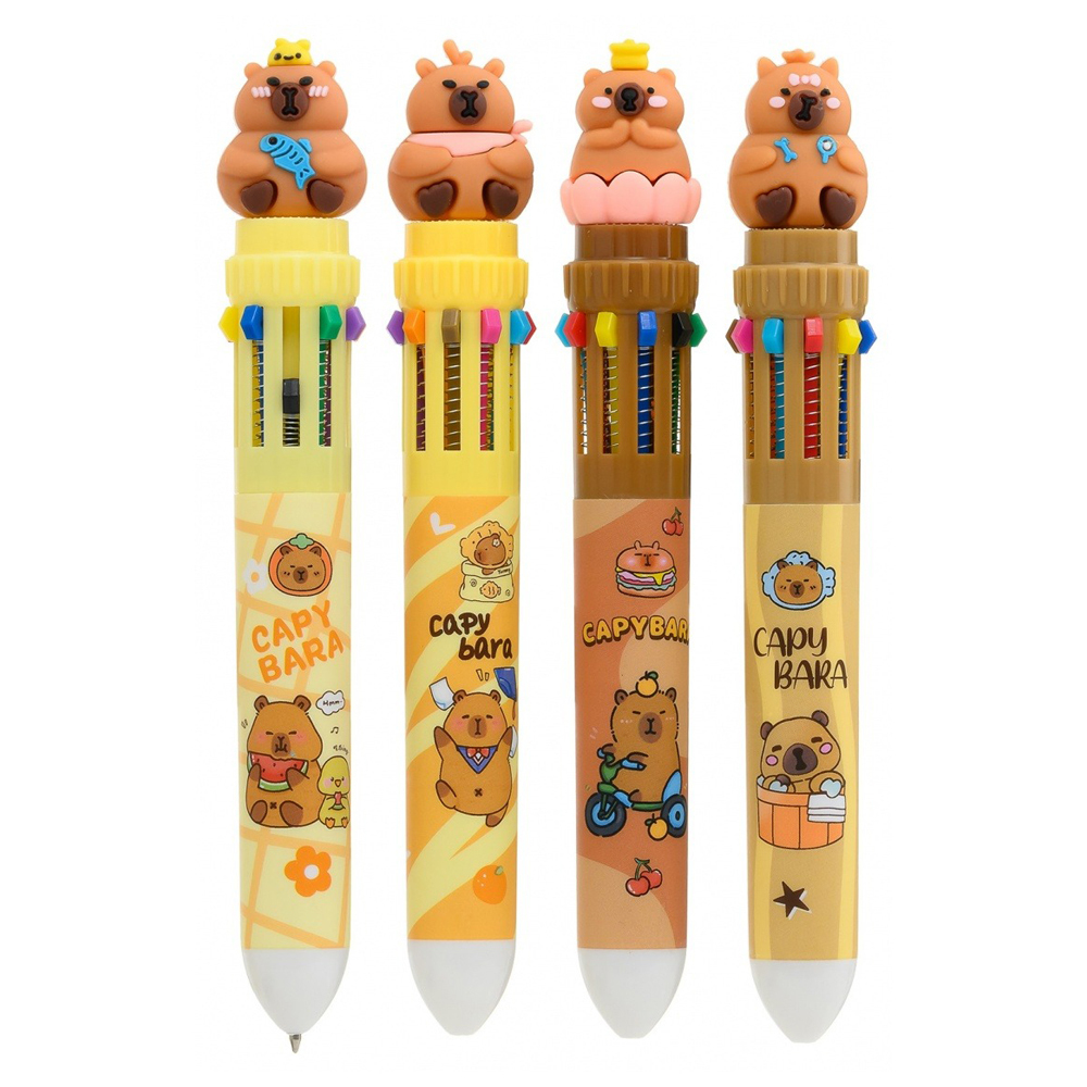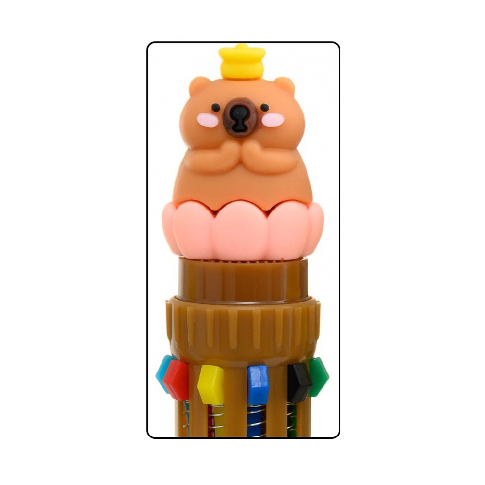 Авторучка 10-ти цветная детская; "КАПИБАРА"; цветной корпус с рисунком /ассорти/, клип в форме фигурки КАПИБАРА.0.5 mm.