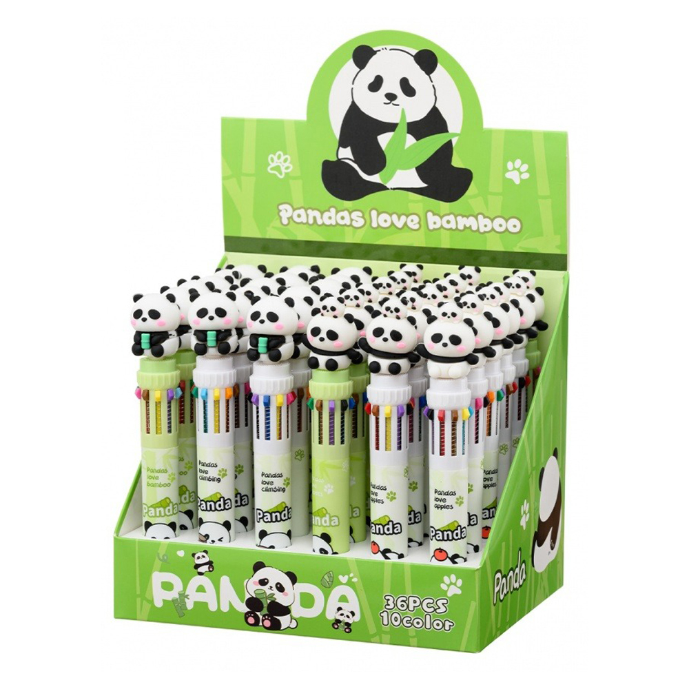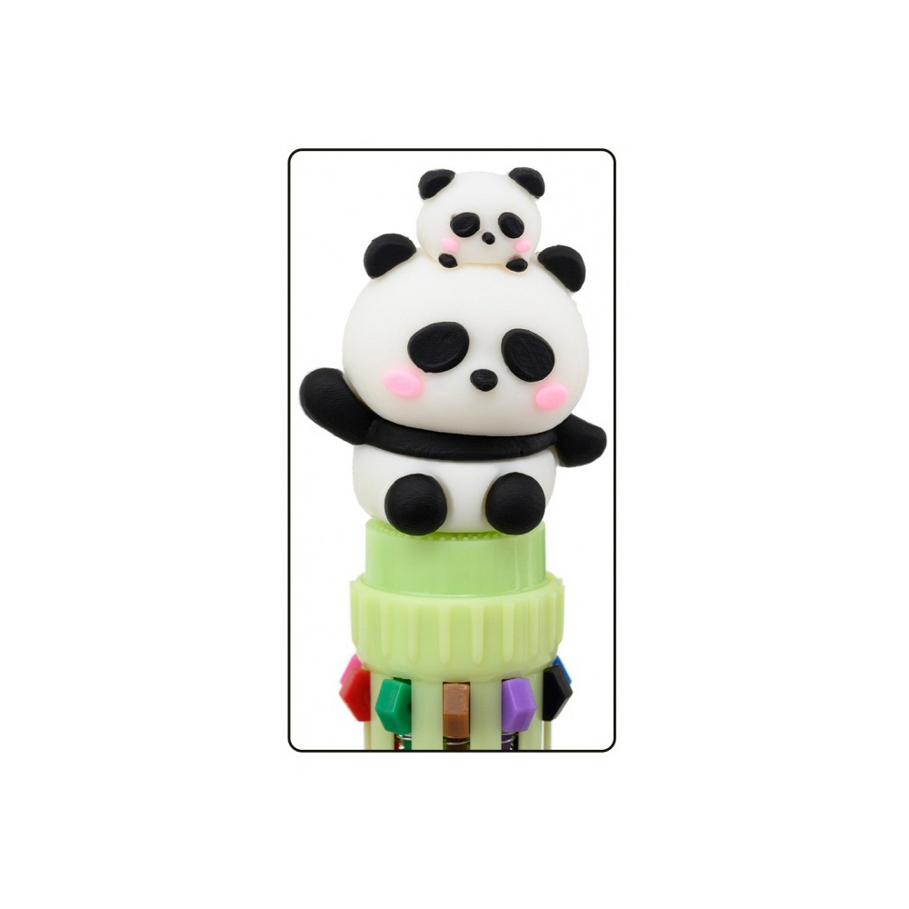 Авторучка 10-и цветная: детская; "ПАНДА"; цветной корпус с рисунком /ассорти/, прорезиненный наконечник-ластик; 0,5 mm.