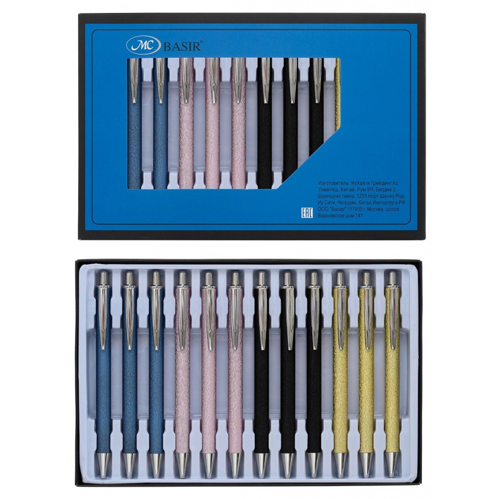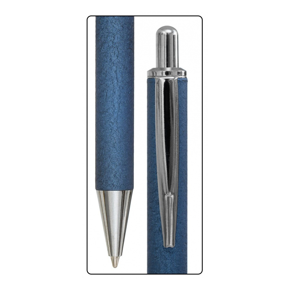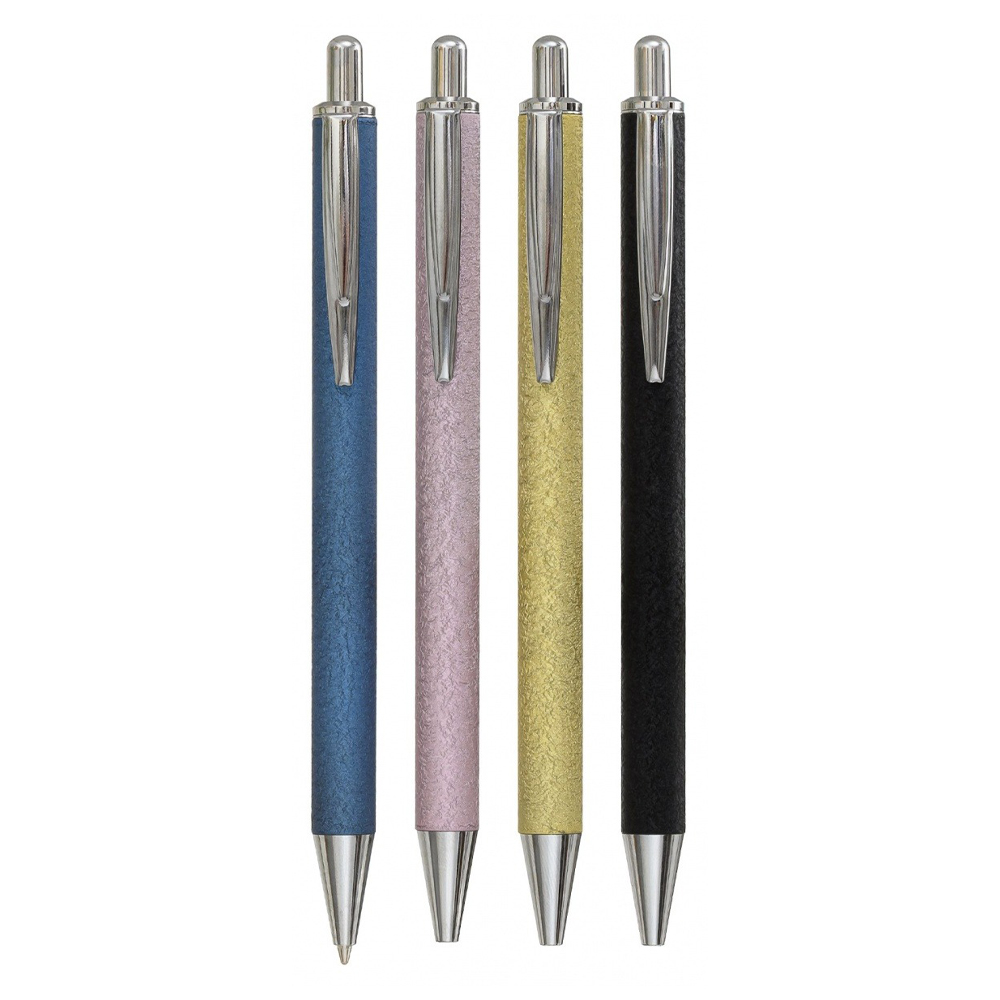 Ручка металлическая: автоматическая; цветной шелковисто-перламутровый корус, клип и наконечник серебристые, цвет чернил - синий