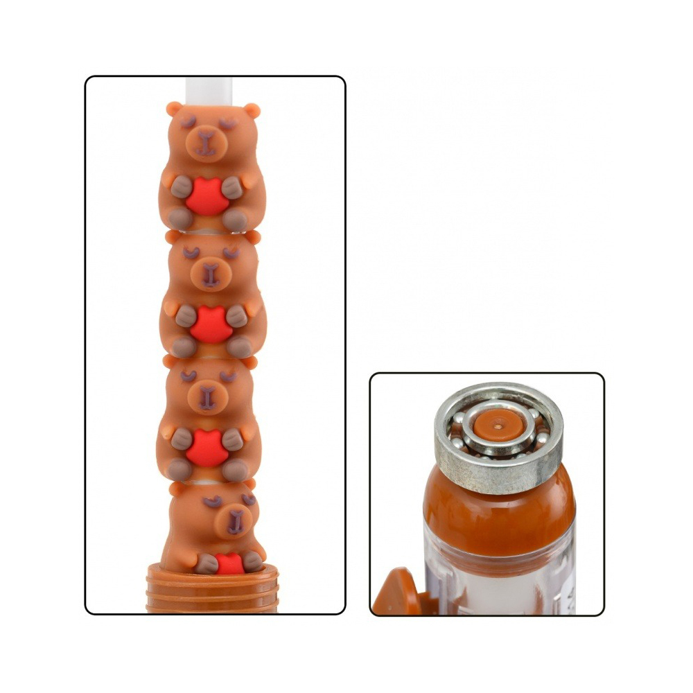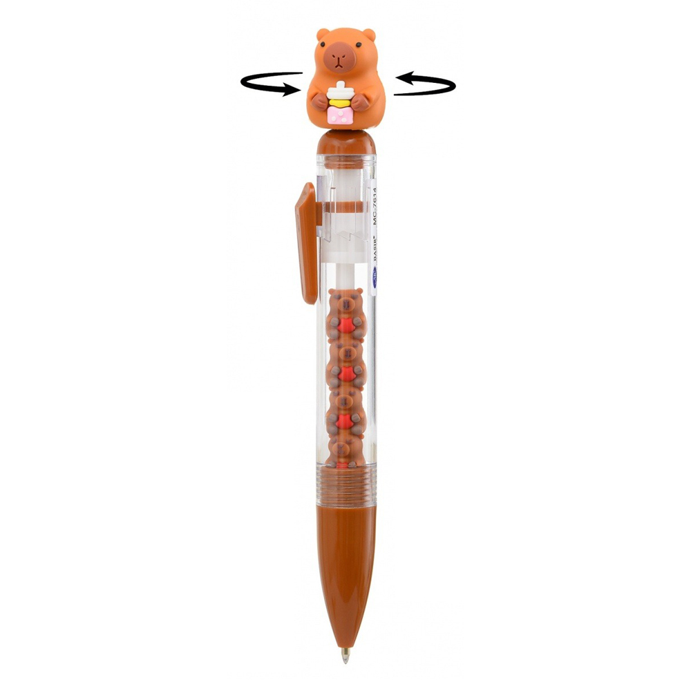 Авторучка "КАПИБАРА"; спиннер; объёмный прозрачный корпус /16 см/ с подвижными фигурками, наконечник и клип цветные, цвет чернил-синий.