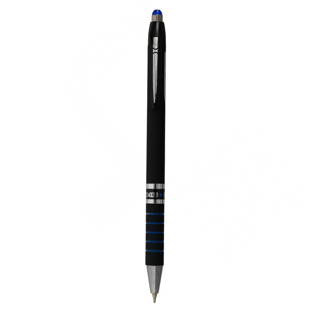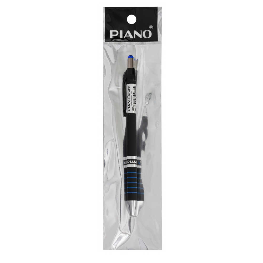 Автоматическая шариковая ручка "Piano",в индивидуальной упаковке с европодвесом,чернила на масляной основе,чёрный, прорезиненный корпус, рельефный держатель с синими полосками, цвет чернил-синий, толщина пишущего узла 0,7 mm.