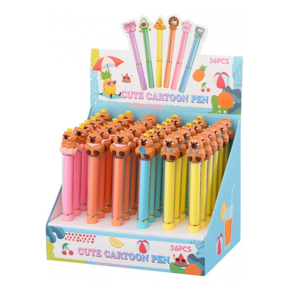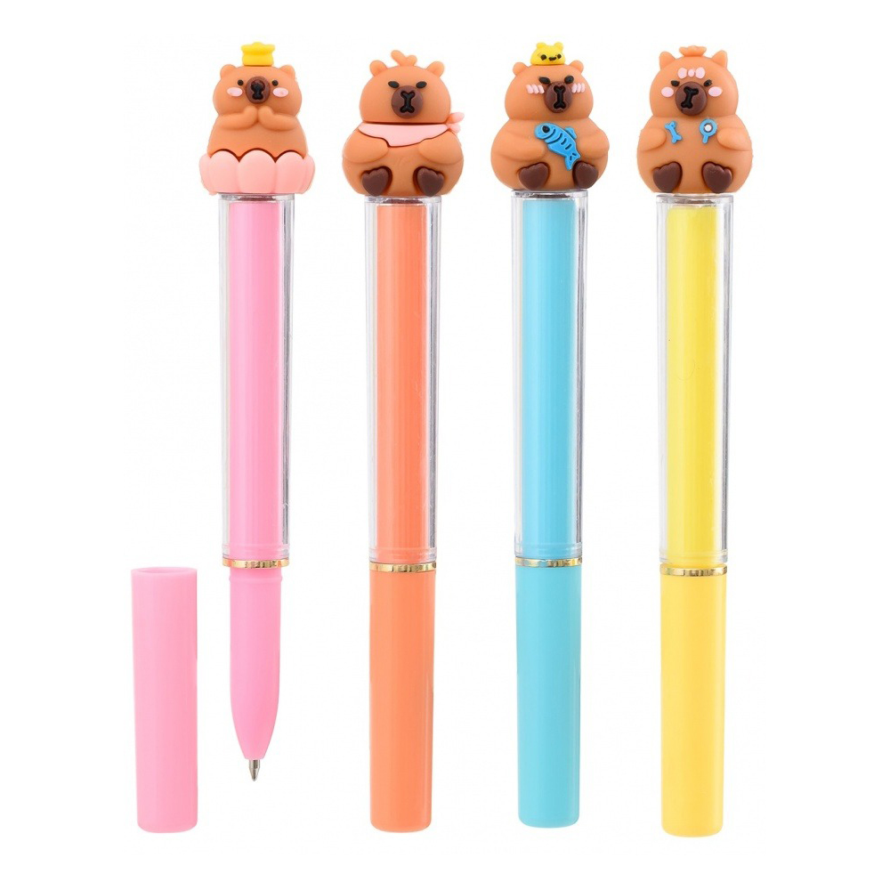 Шариковая ручка: детская; "КАПИБАРА"; одноразовая, оригинальный цветной корпус /ассорти/, цвет чернил синий.