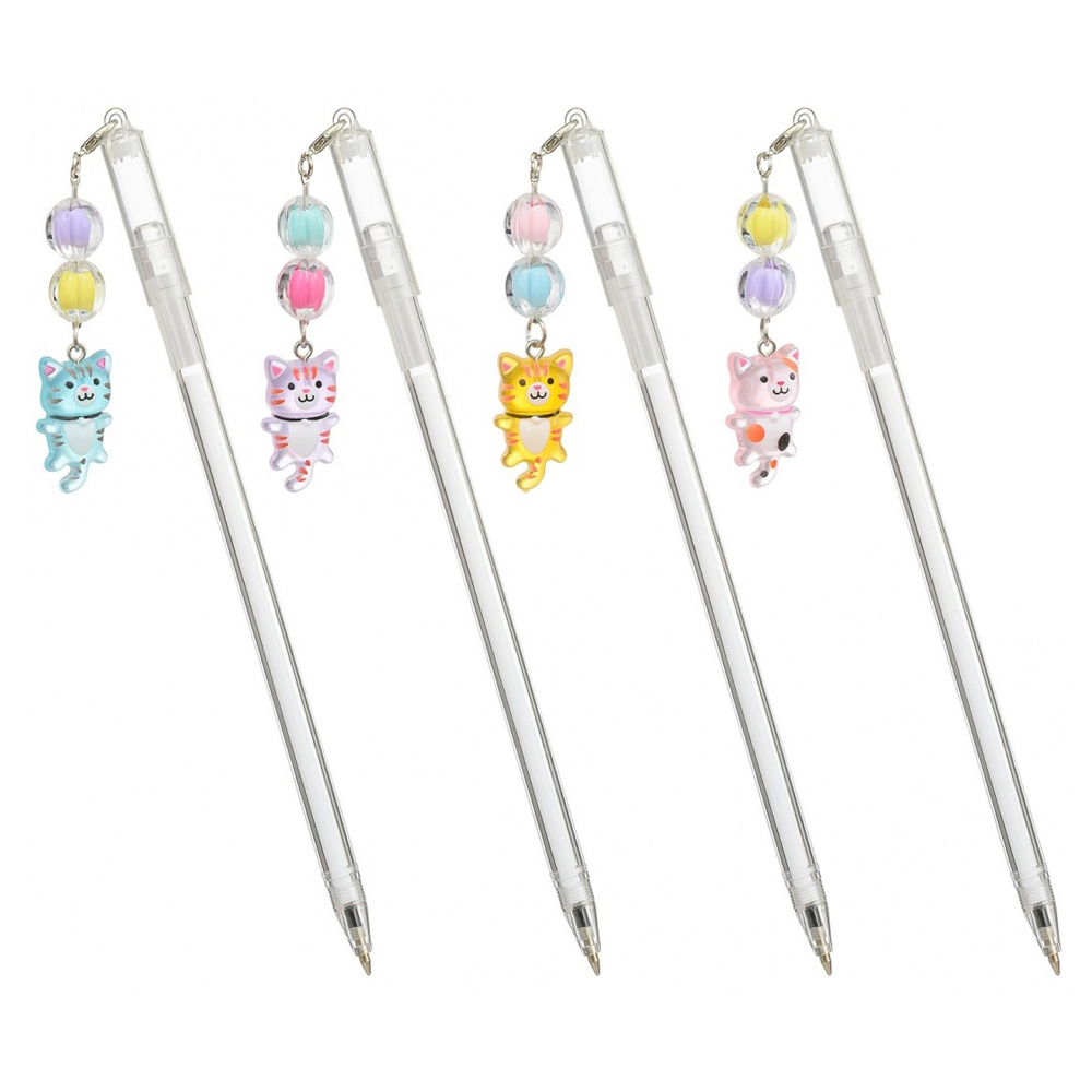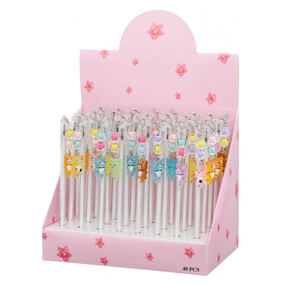 Шариковая ручка: "КОТЯТА"; прозрачный пластиковый корпус, колпачок со съёмным брелоком-бусинки с фигуркой, цвет чернил -синий.