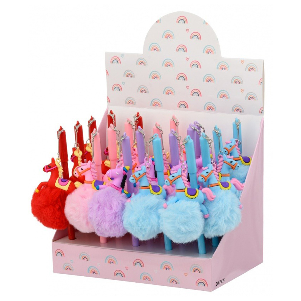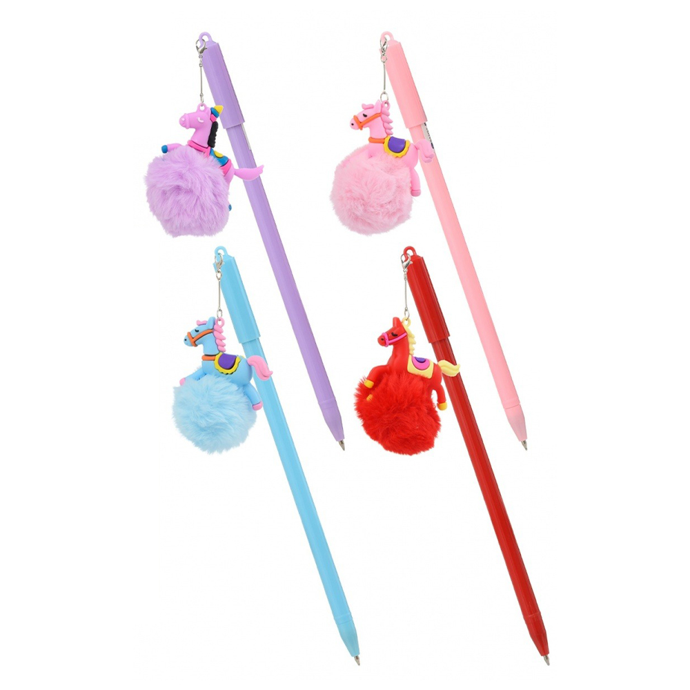 Шариковая ручка: "ЛОШАДЬ ПУШИСТИК"; цветной пластиковый корпус /ассорти/, колпачок со съёмным брелоком /8 см/, цвет чернил -синий.