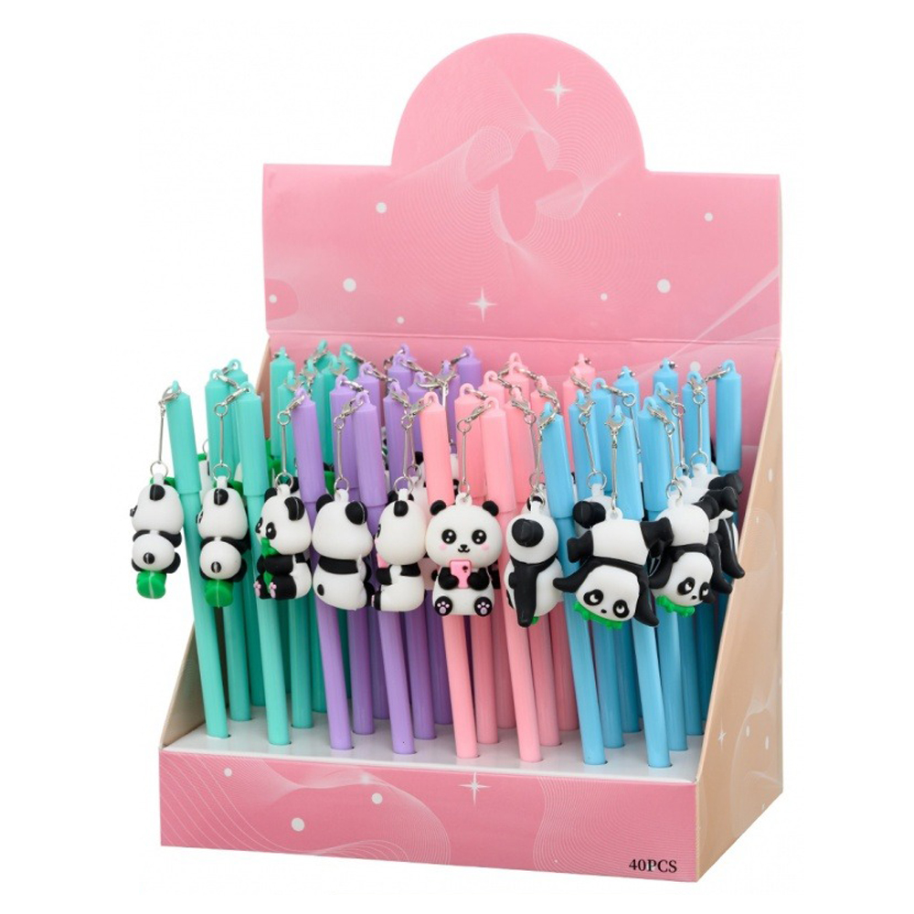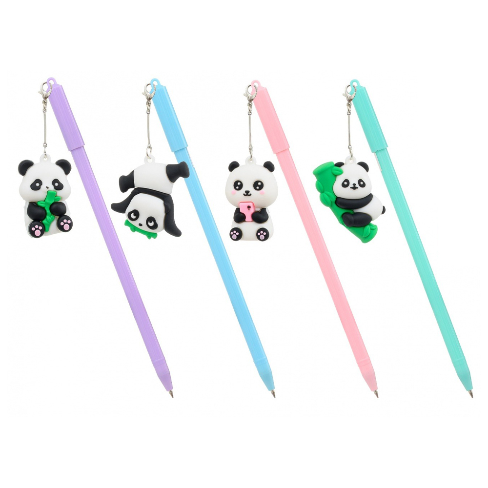 Шариковая ручка: "ПАНДА"; цветной пластиковый корпус /ассорти/, колпачок со съёмным брелоком /4,6 см/, цвет чернил -синий.