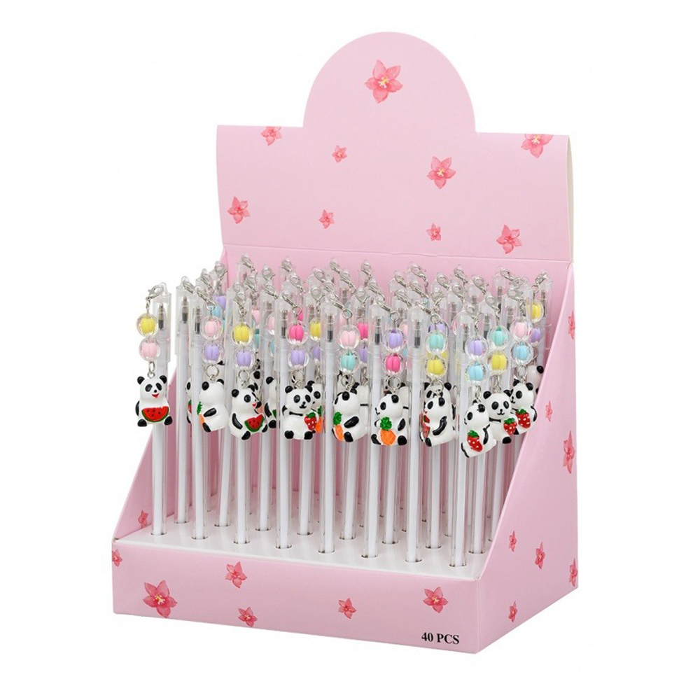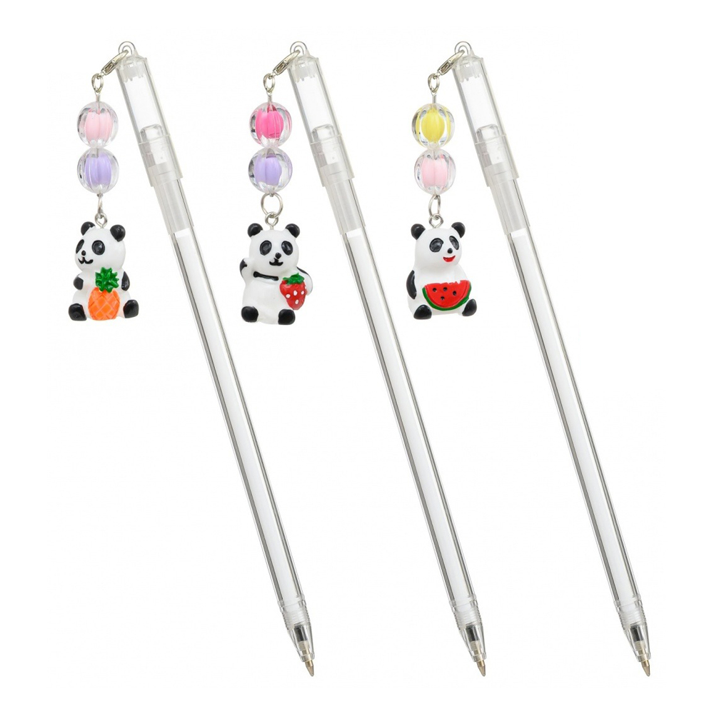 Шариковая ручка: "ПАНДА"; прозрачный пластиковый корпус, колпачок со съёмным брелоком-бусинки с фигуркой, цвет чернил -синий.