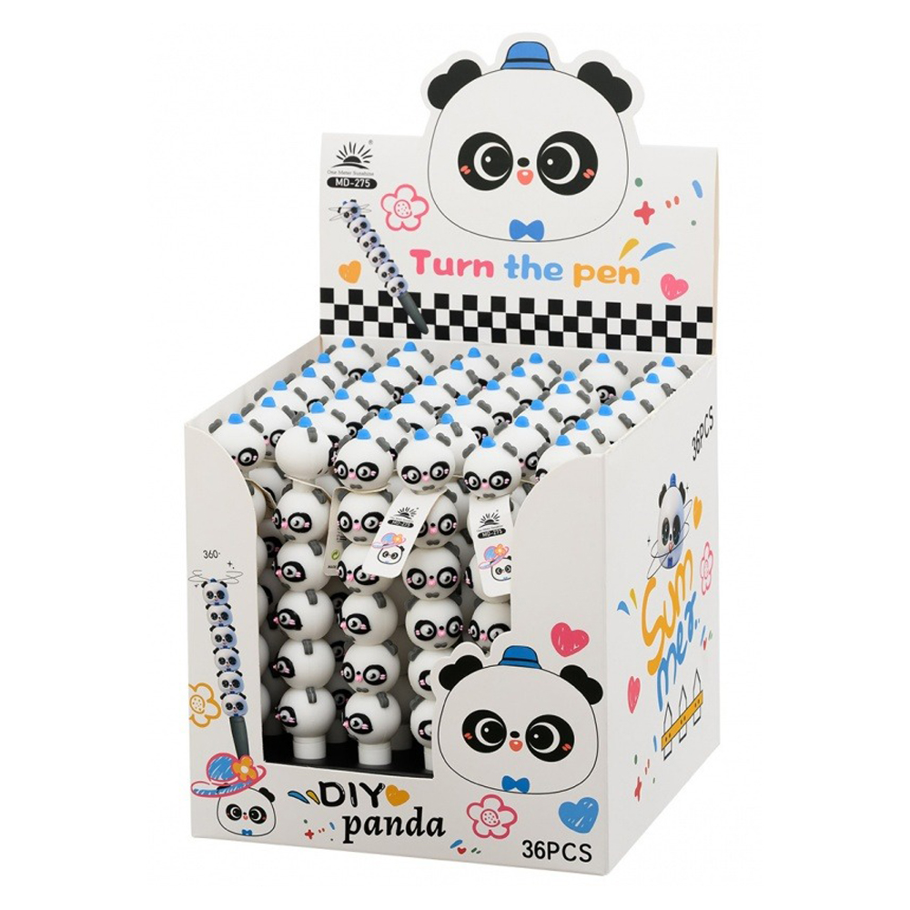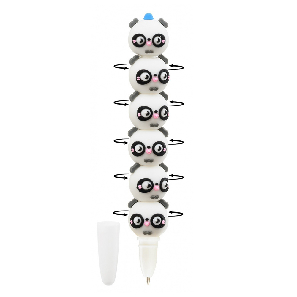 Шариковая ручка детская: "ПАНДА"; объёмный корпус с вращающимися фигурками-панда; (сменный стержень), цвет чернил синий.
