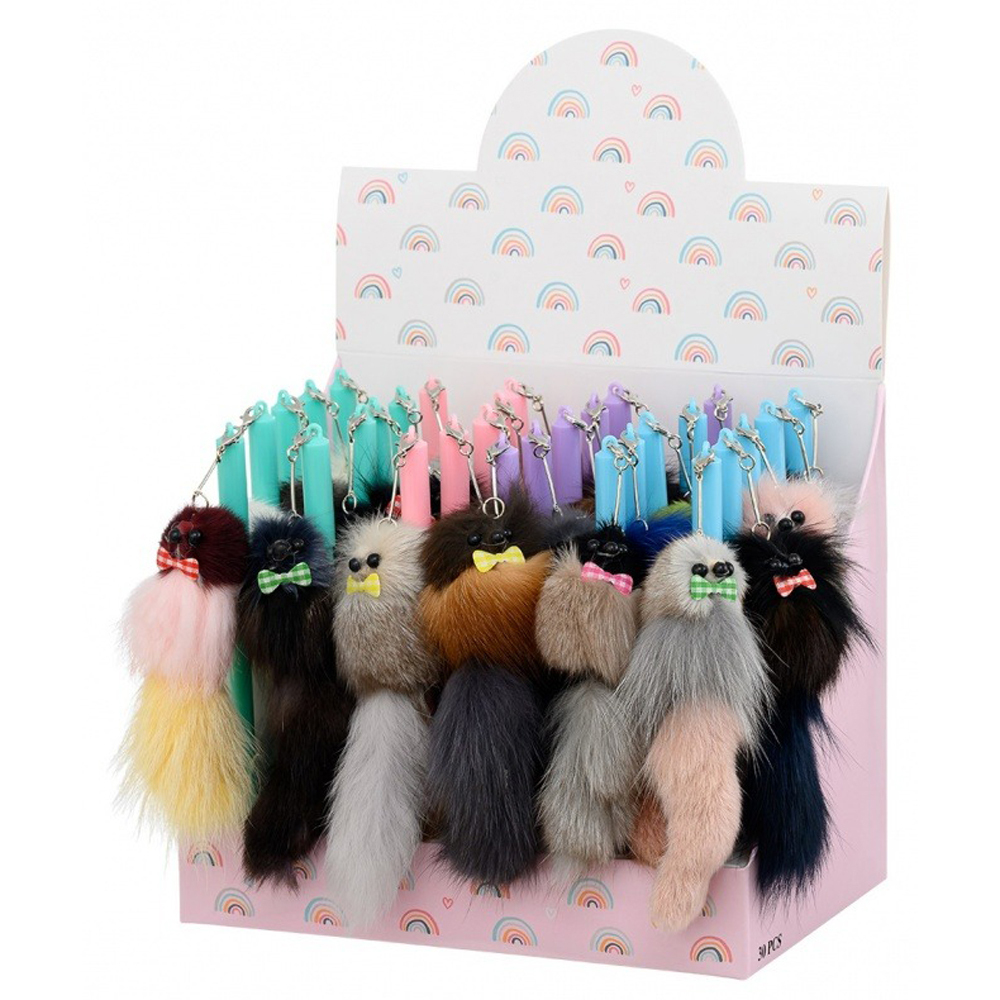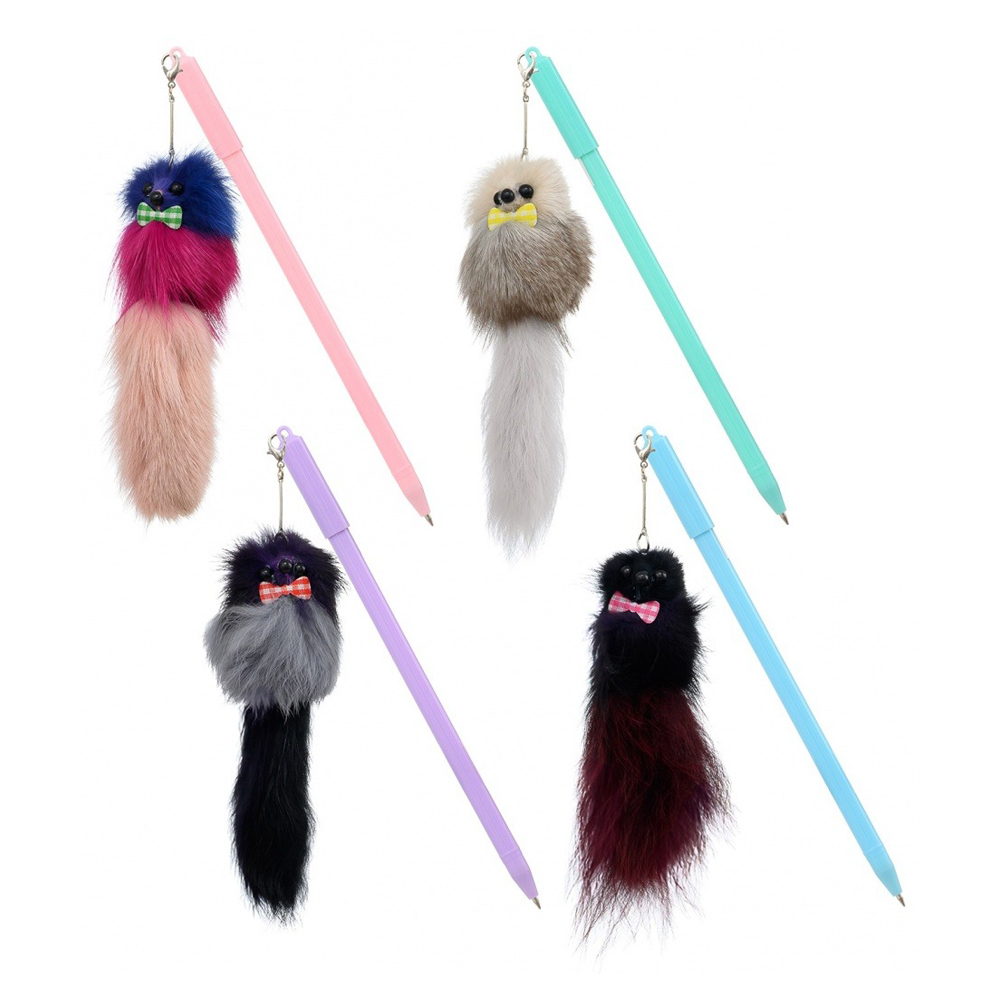 Шариковая ручка: "ПУШИСТИК"; цветной пластиковый корпус /ассорти/, колпачок со съёмным брелоком-из меха /11 см/, цвет чернил -синий.