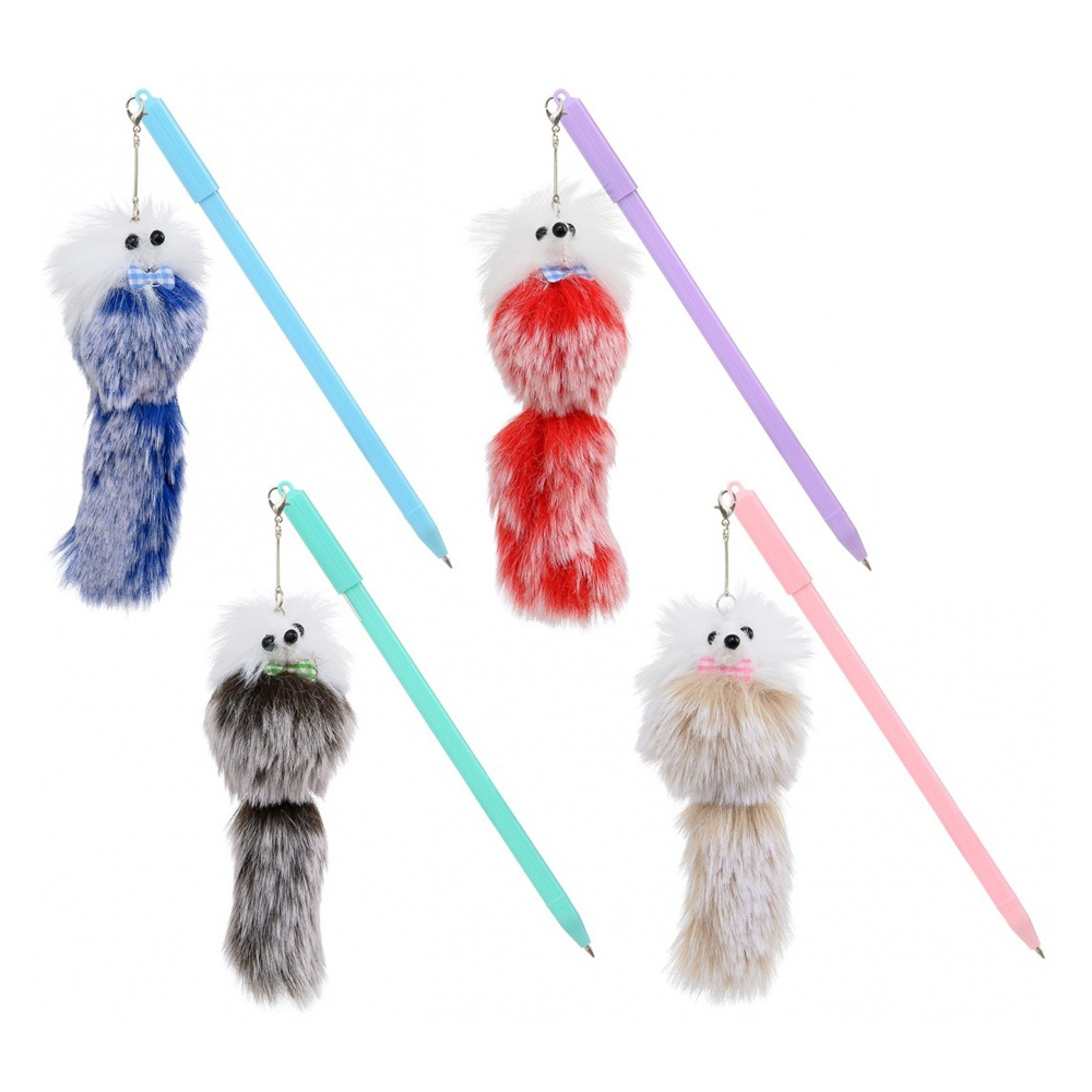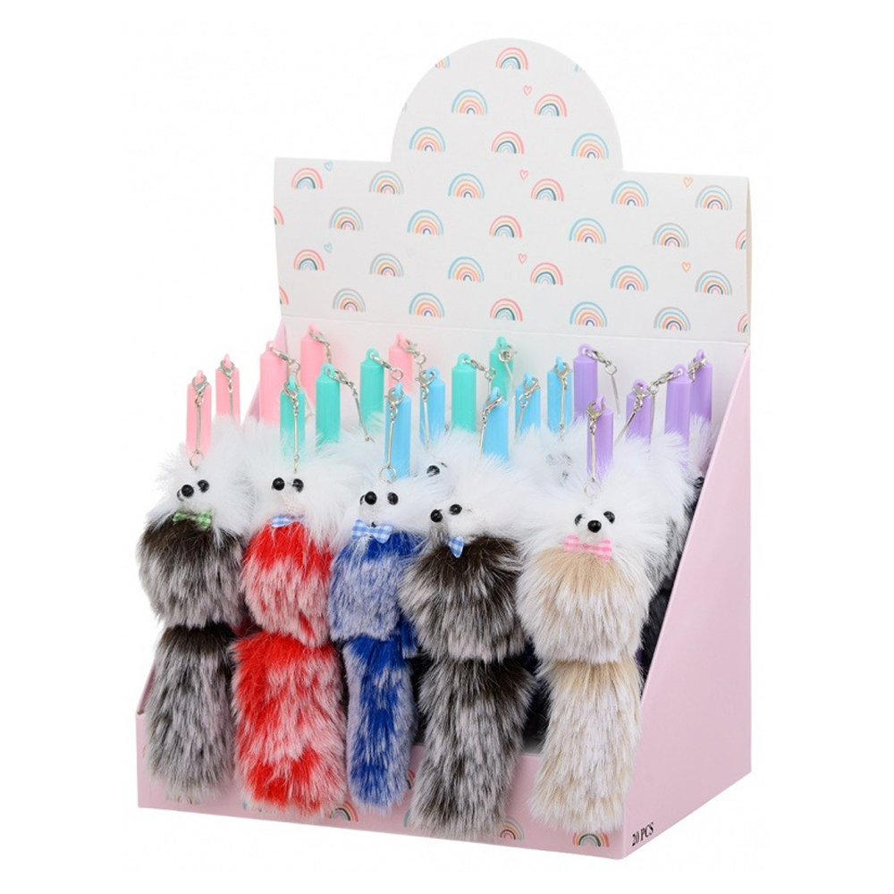 Шариковая ручка: "ПУШИСТИК"; цветной пластиковый корпус /ассорти/, колпачок со съёмным брелоком-из меха /13 см/, цвет чернил -синий.