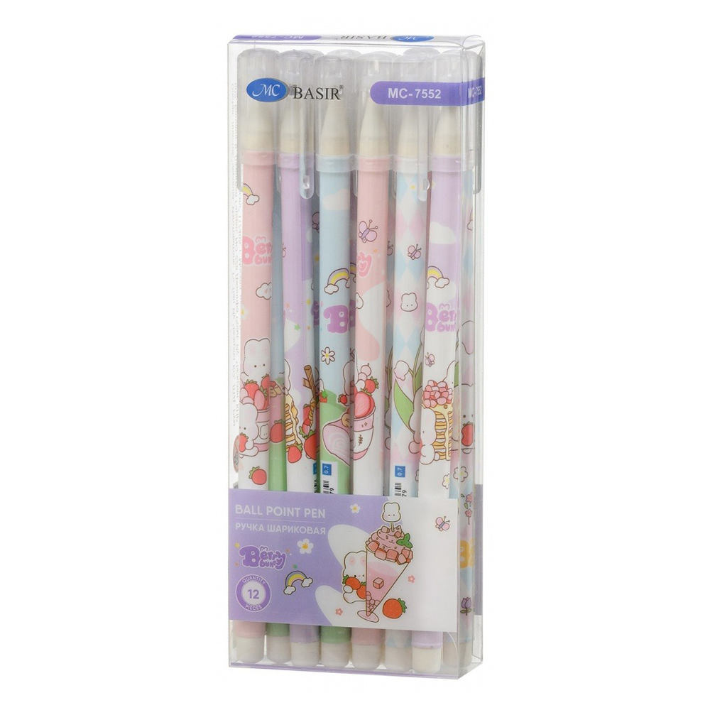 Шариковая ручка: "ЗАЙЧИКИ ДЕСЕРТ"; цветной корпус с рисунком /ассорти/; толщина пишущего наконечника-0,7 mm; цвет чернил-синий.