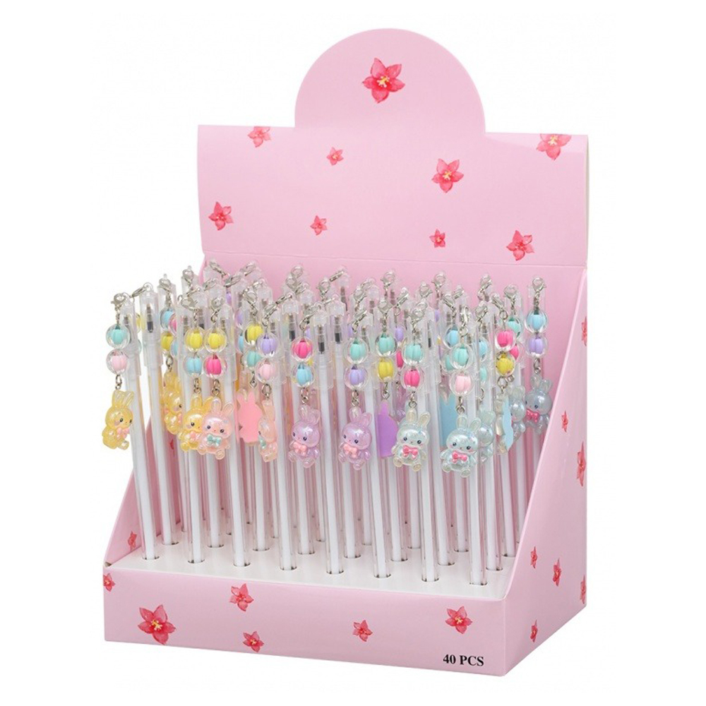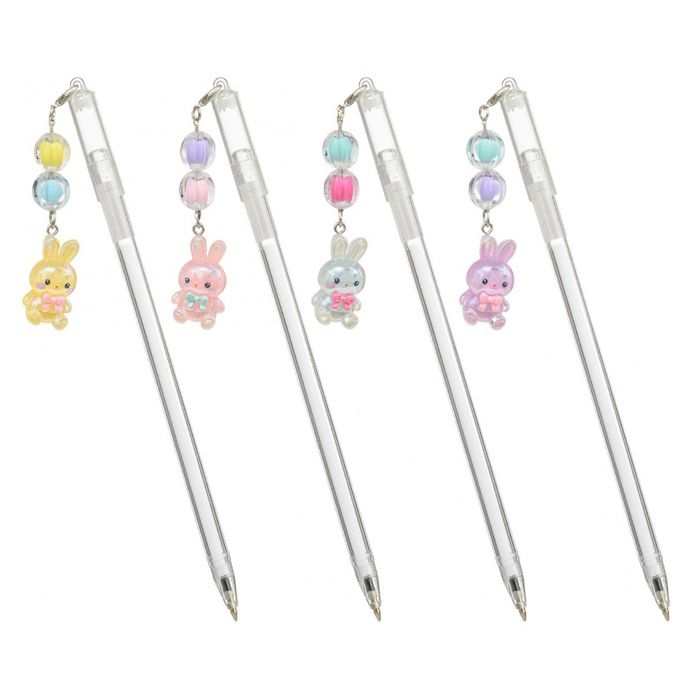 Шариковая ручка: "ЗАЙЧИКИ"; прозрачный пластиковый корпус, колпачок со съёмным брелоком-бусинки с фигуркой, цвет чернил -синий.